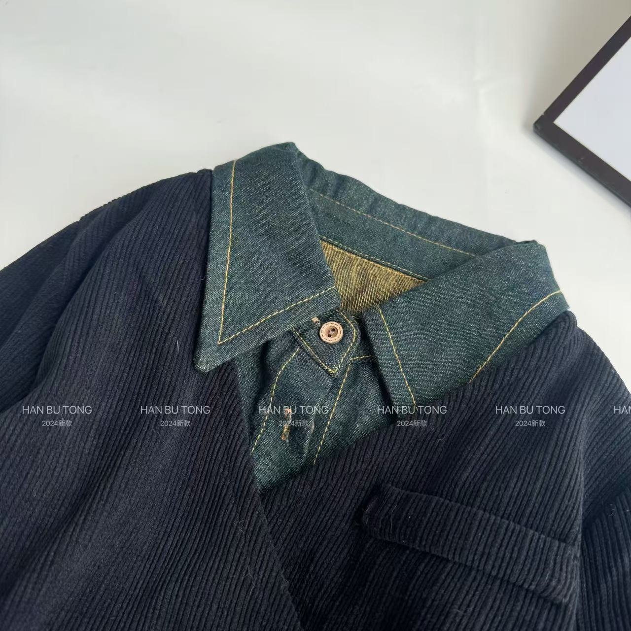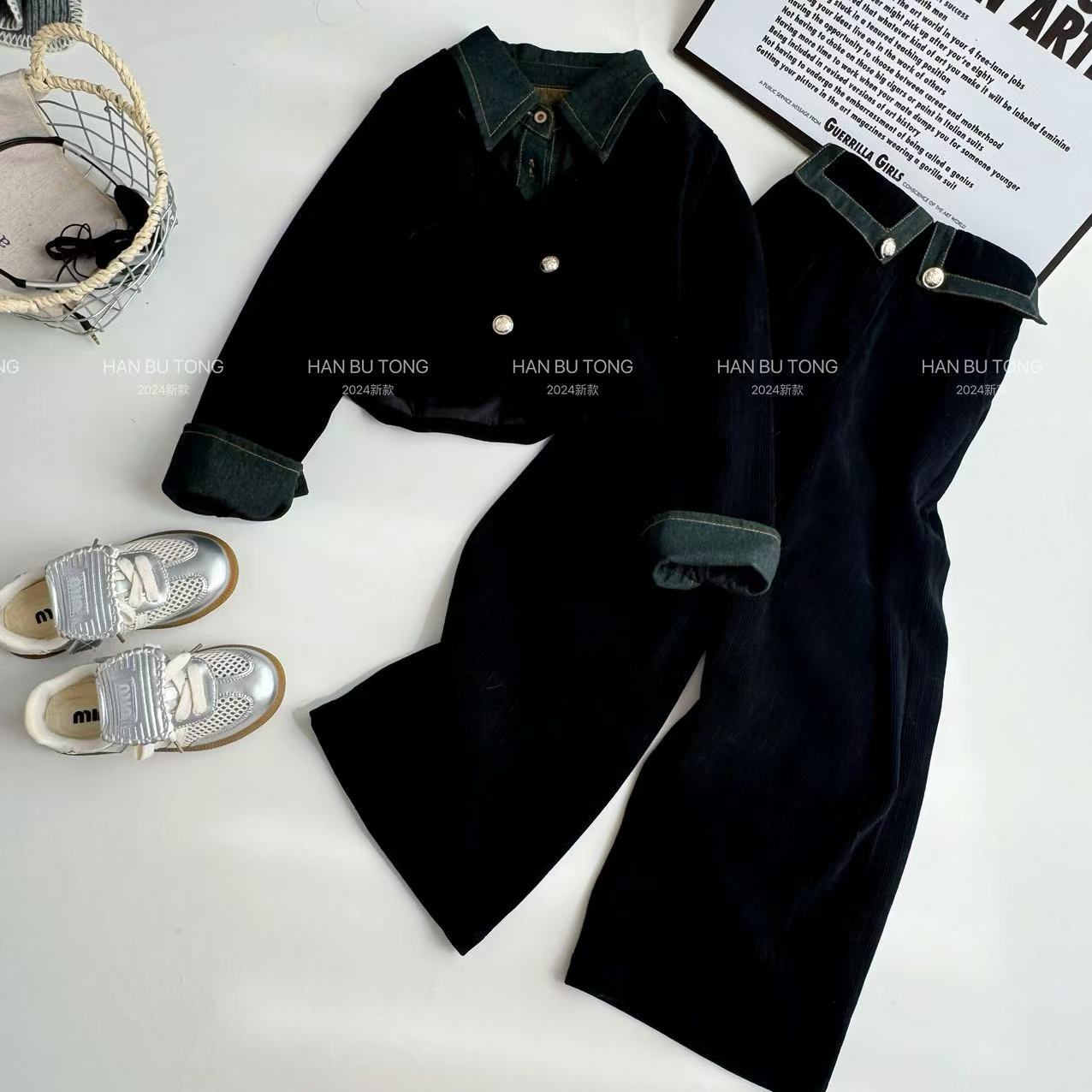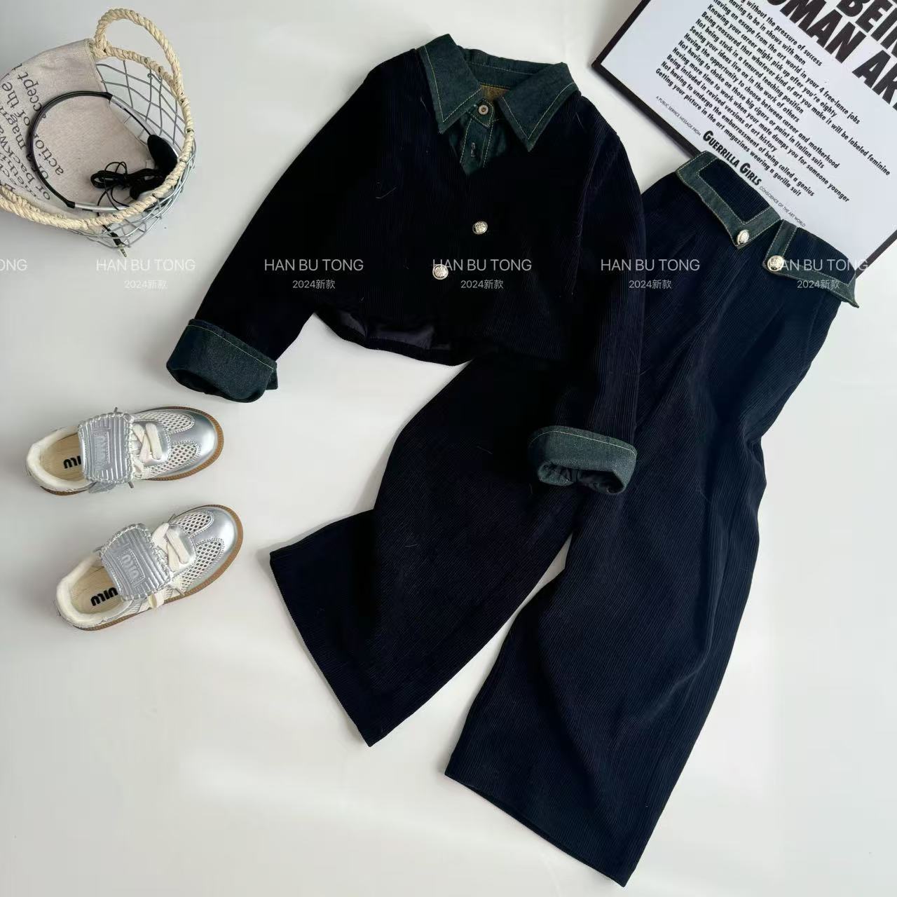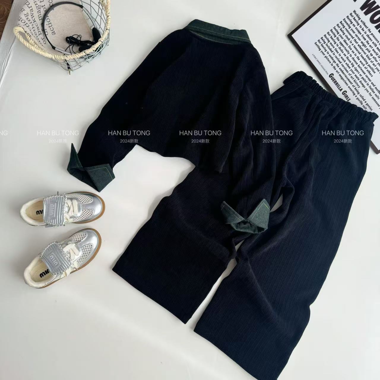 여자 2024 가짜 투피스 탑 코듀로이 하이 웨이스트 바지 다리 바지 투피스 세트 틈새 레트로 프랑스 하이 엔드 센스