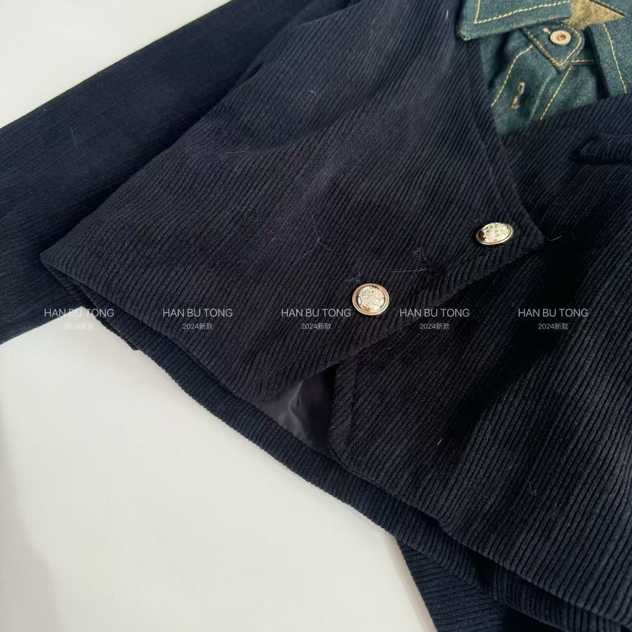 여자 2024 가짜 투피스 탑 코듀로이 하이 웨이스트 바지 다리 바지 투피스 세트 틈새 레트로 프랑스 하이 엔드 센스스토어 가기