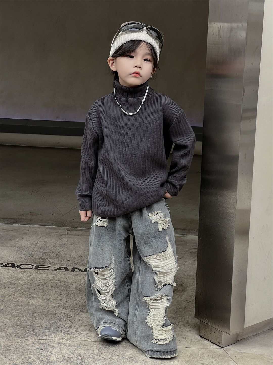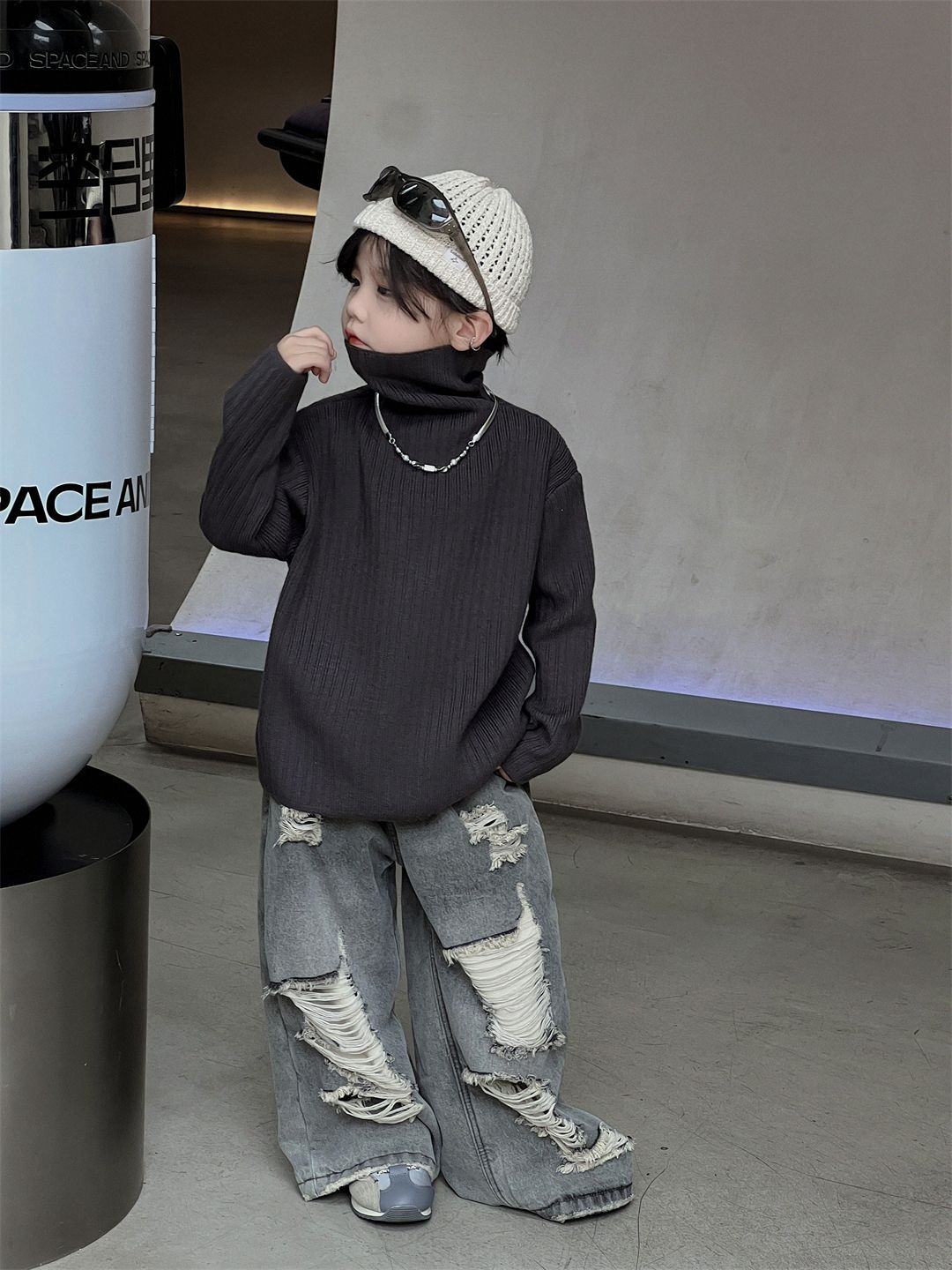나무 양 2024 어린이 가을 겨울 어린이 착용 기본 셔츠 게으른 느슨한 높은 목 부드러운 따뜻한 최고 스웨터 트렌디스토어 가기
