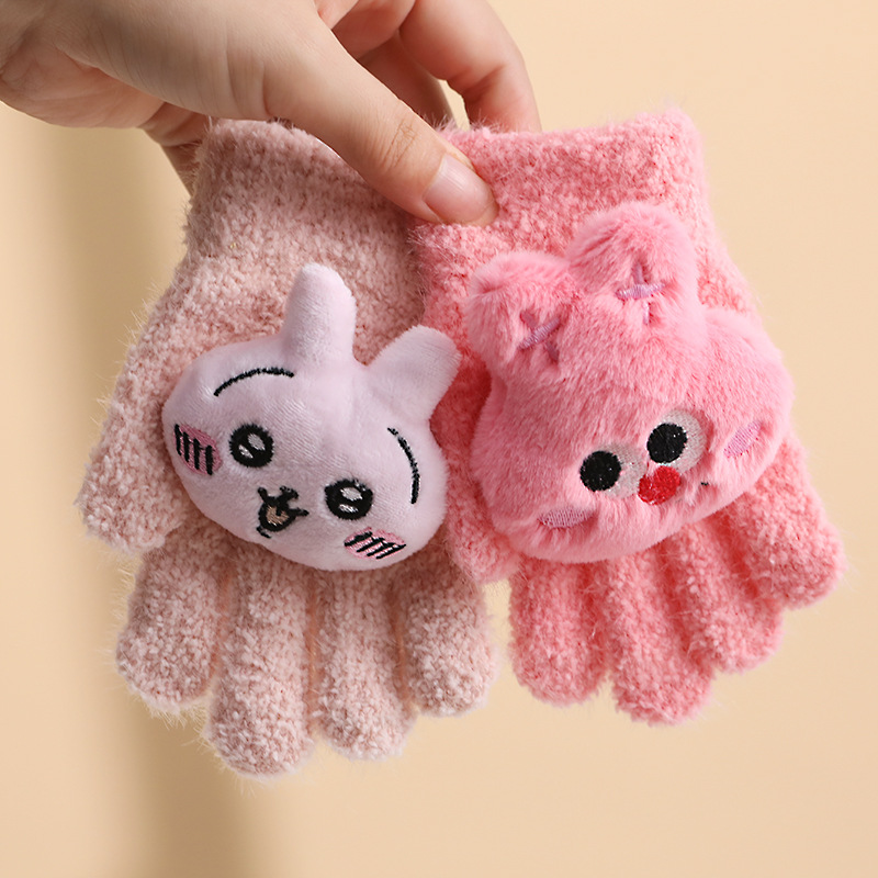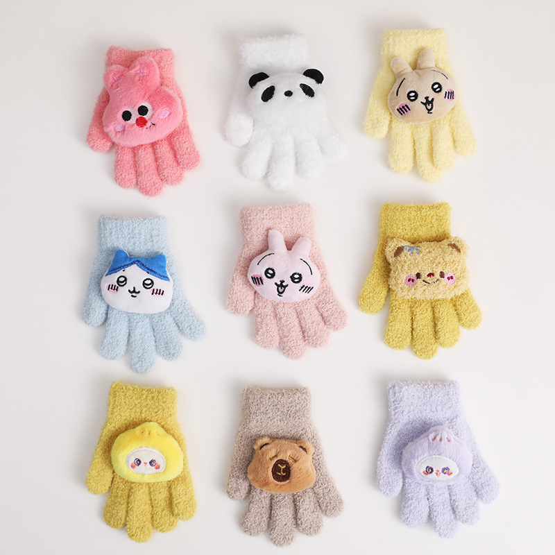 어린이 장갑 가을과 겨울 소녀 따뜻한 기모 만화 어린이 소년 겨울 냉동 다섯 손가락 장갑