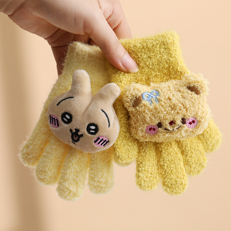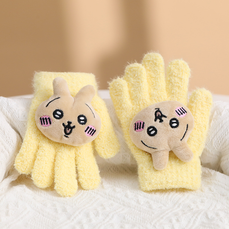 • 어린이 손가락 따뜻한 장갑 노란 토끼