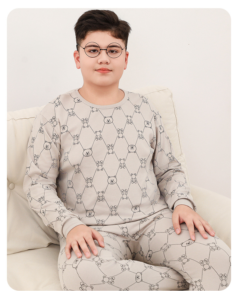 통통한 어린이 가을 및 겨울 면화 따뜻한 보투 셔츠 큰 어린이 긴팔 바지 홈 느슨한 파자마 속옷스토어 가기