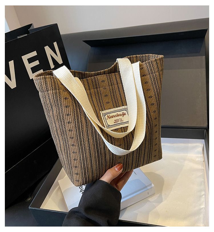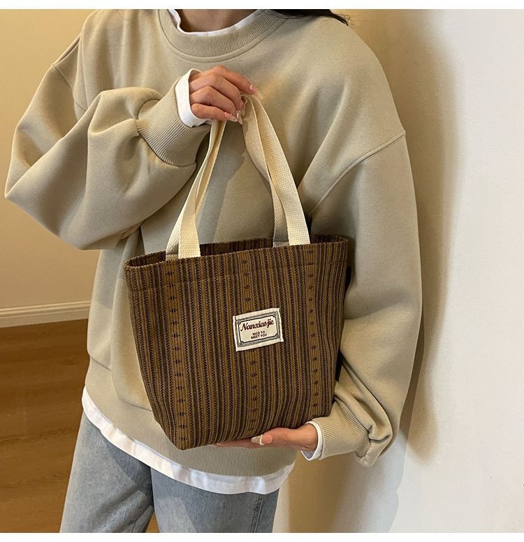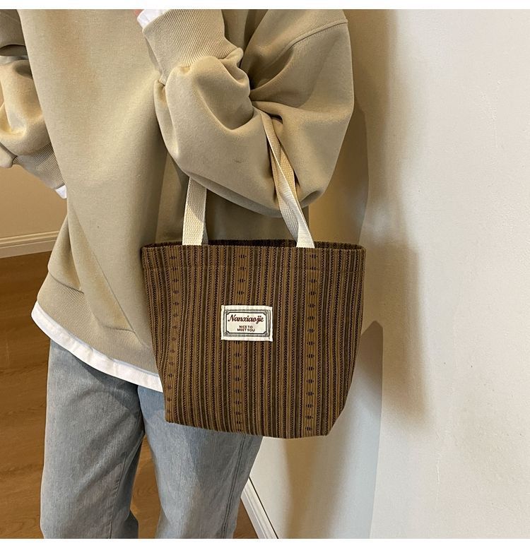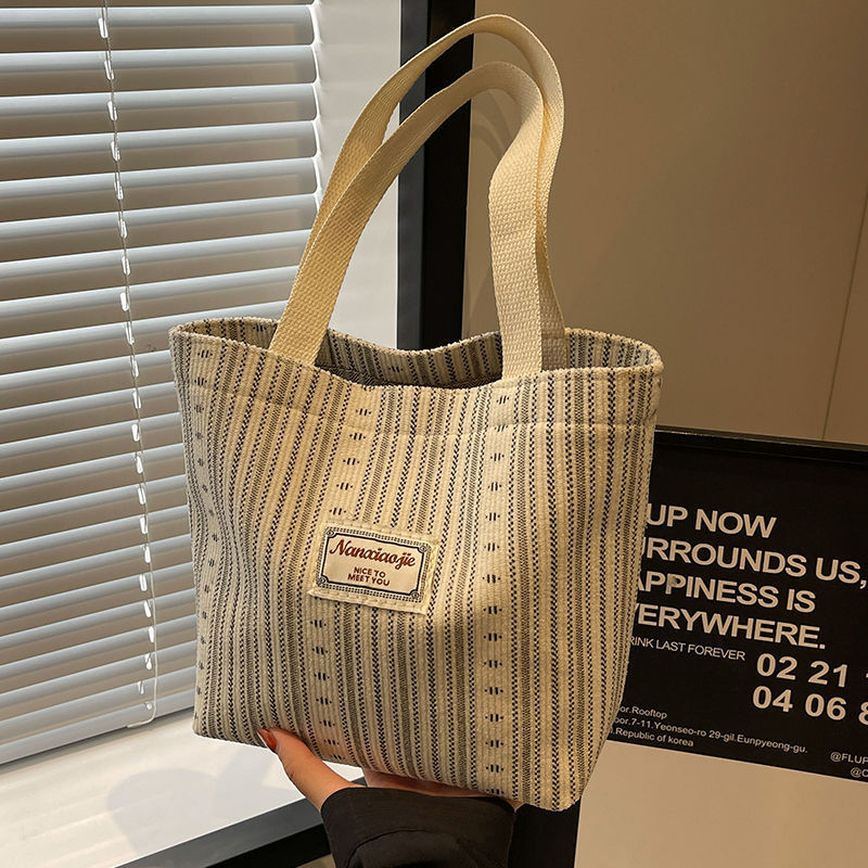 캔버스백 스트라이프 핸드백 숄더백 인스 스타일 일본식 여성용 대용량 토트백 출퇴근용 가방 경량 핸드백