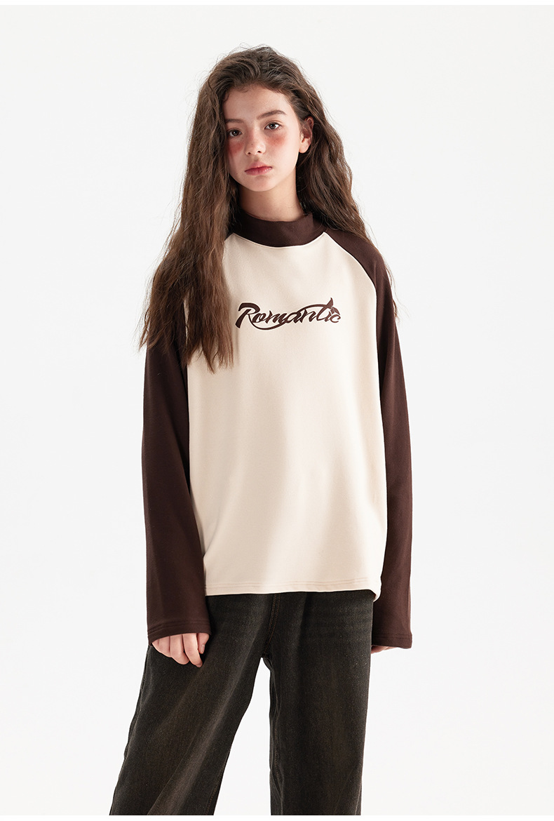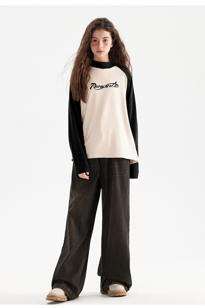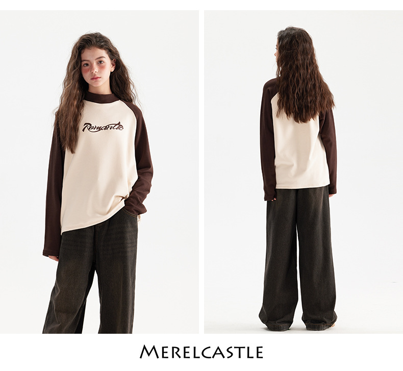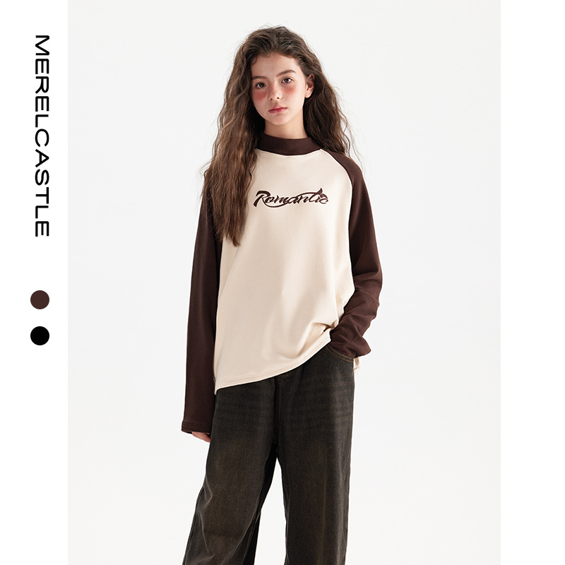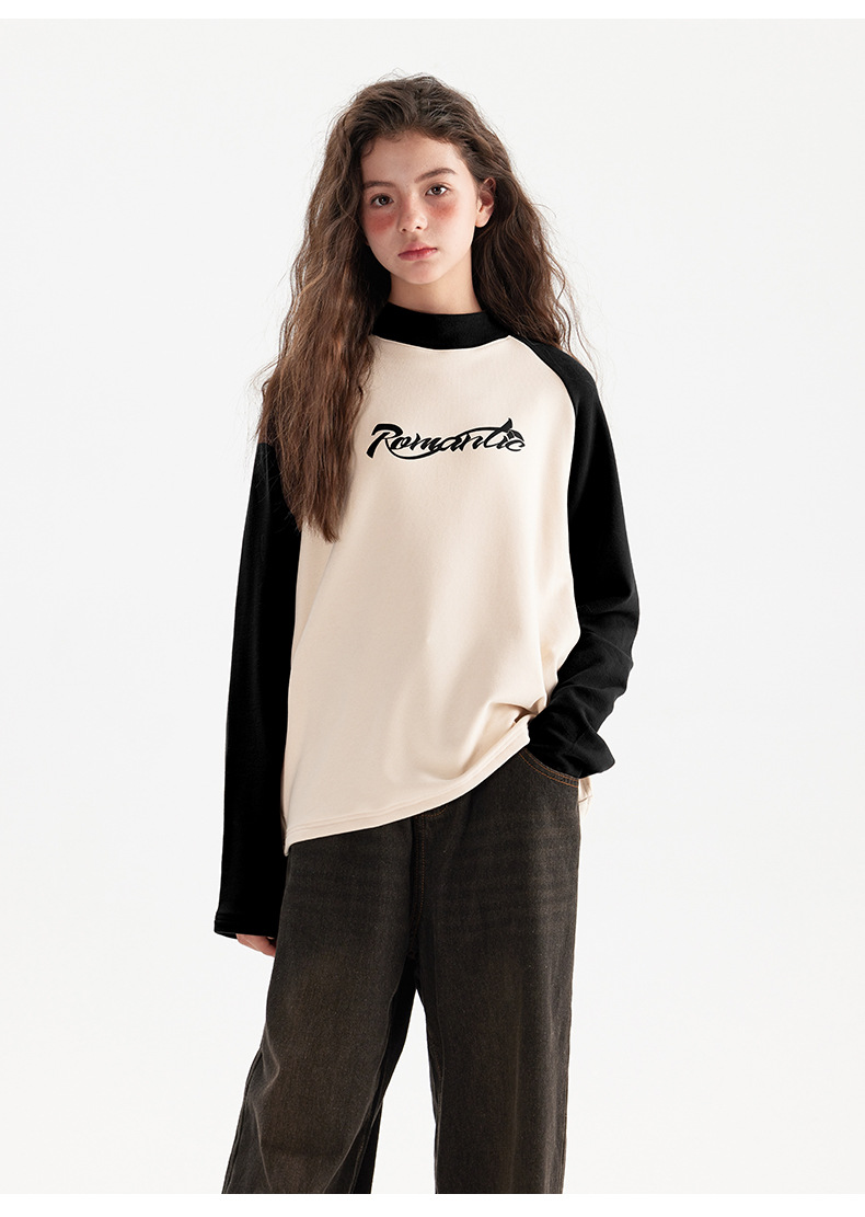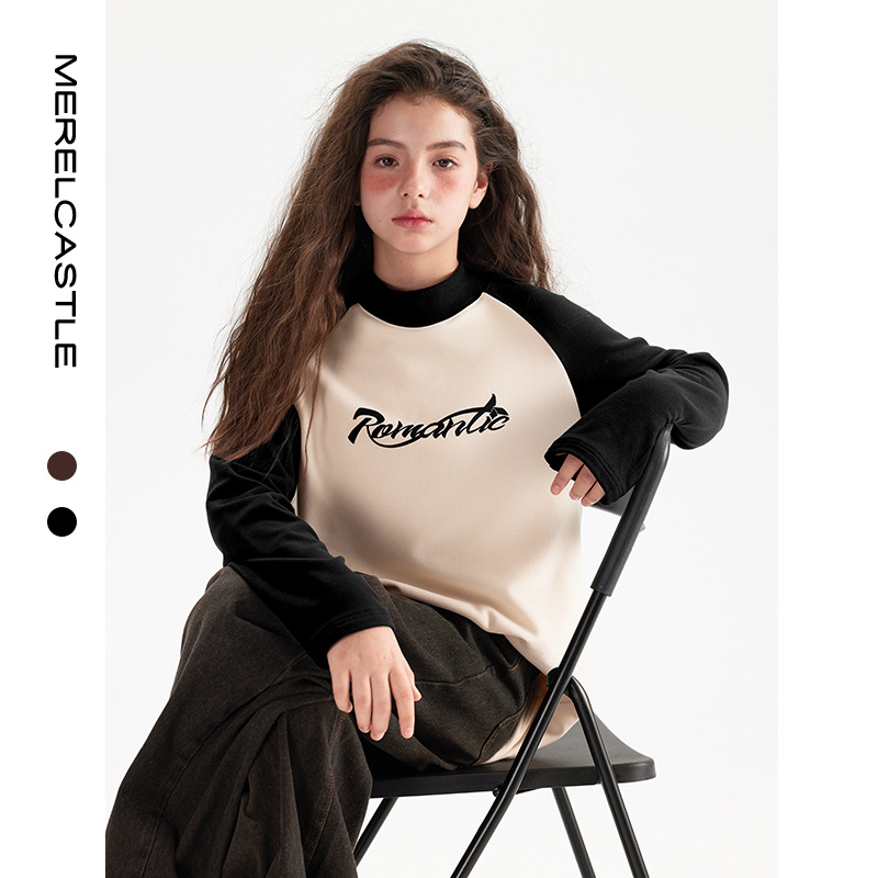 2024 년 새 어린이 서양식 하프 하이 칼라 벨벳 탑 걸스 긴팔 티셔츠스토어 가기
