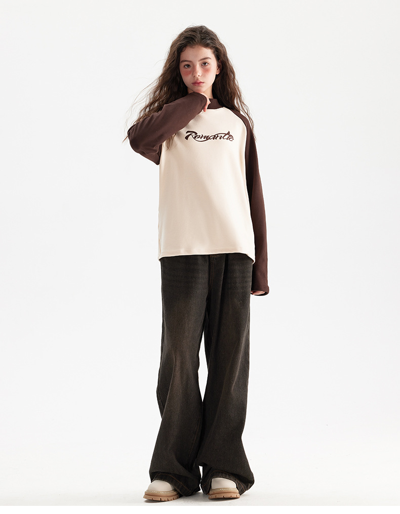 2024 년 새 어린이 서양식 하프 하이 칼라 벨벳 탑 걸스 긴팔 티셔츠