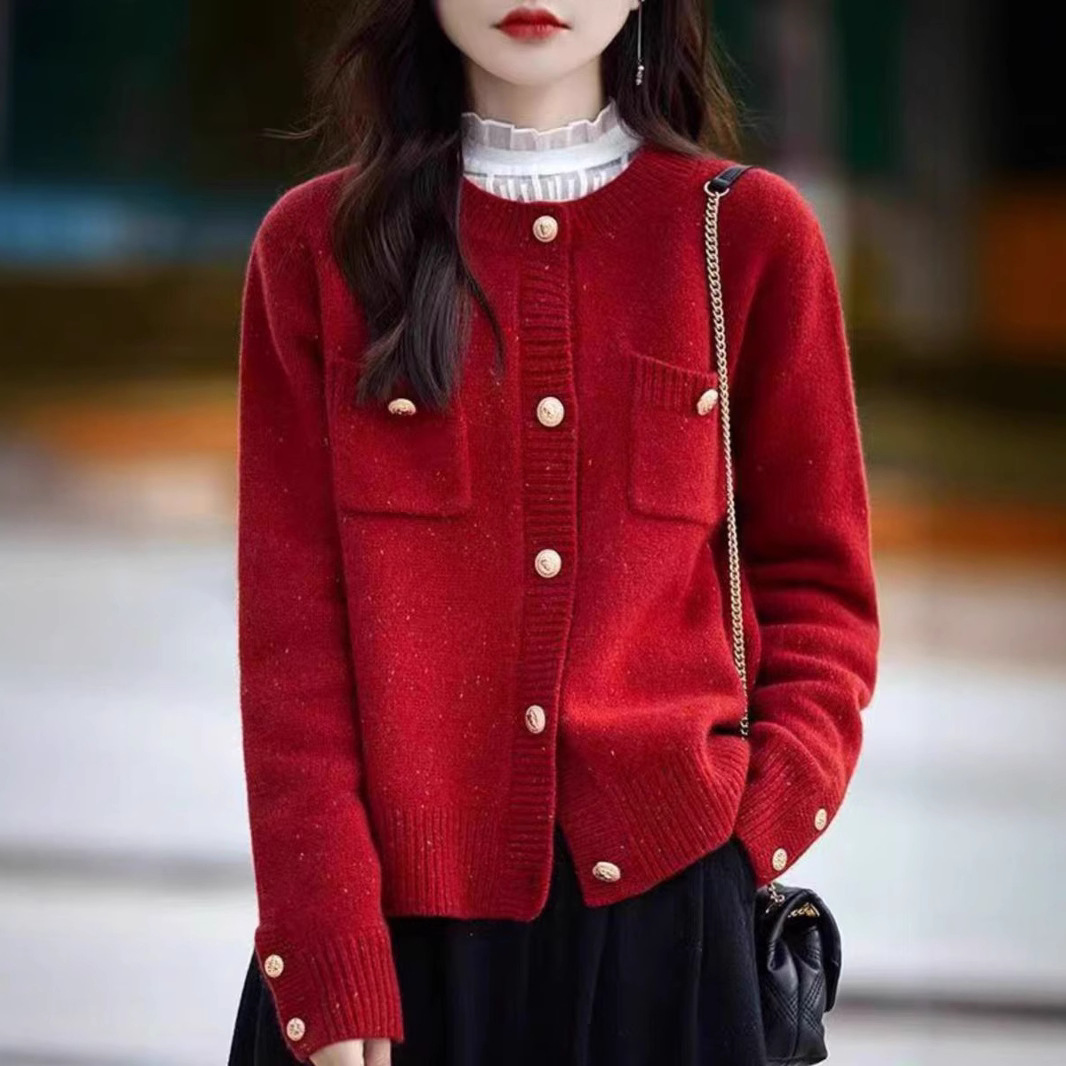 니트 카디건 여성 가을 2024 새로운 느슨한 한국 패션 라운드 넥 짧은 빨간 여성 스웨터 코트스토어 가기