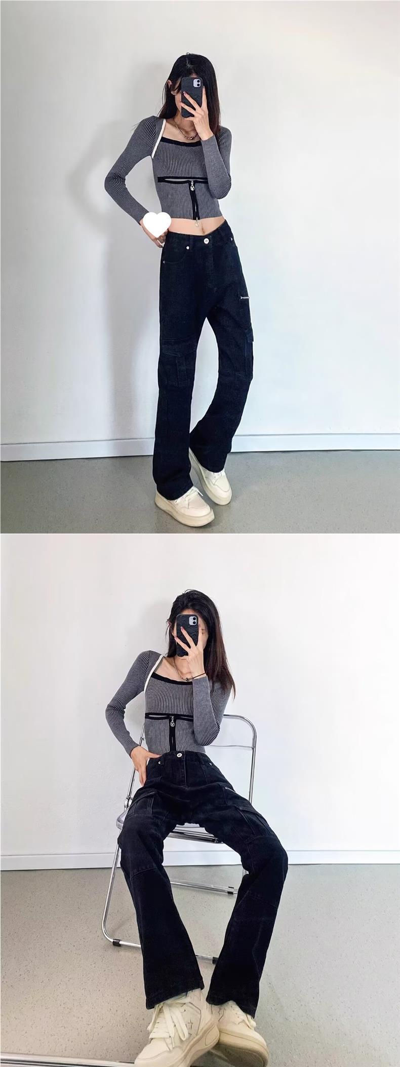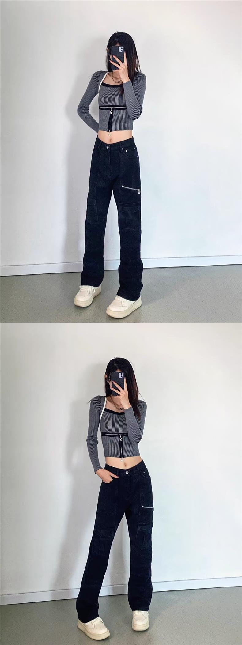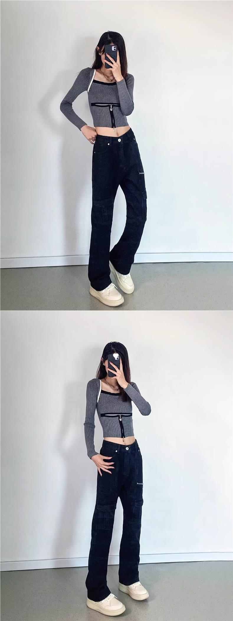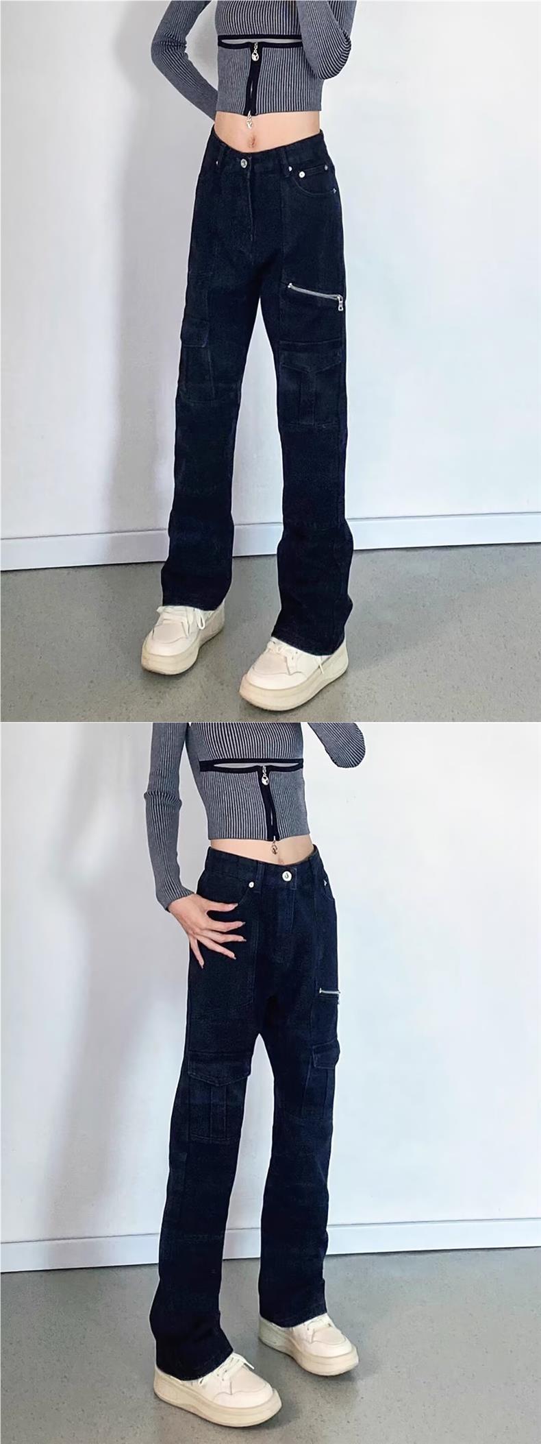 미국 스트리트 블랙 워크 청바지 남성 조수 브랜드 유럽과 미국의 하이 스트리트 분위기 바람 마이크로 혼 팬츠스토어 가기