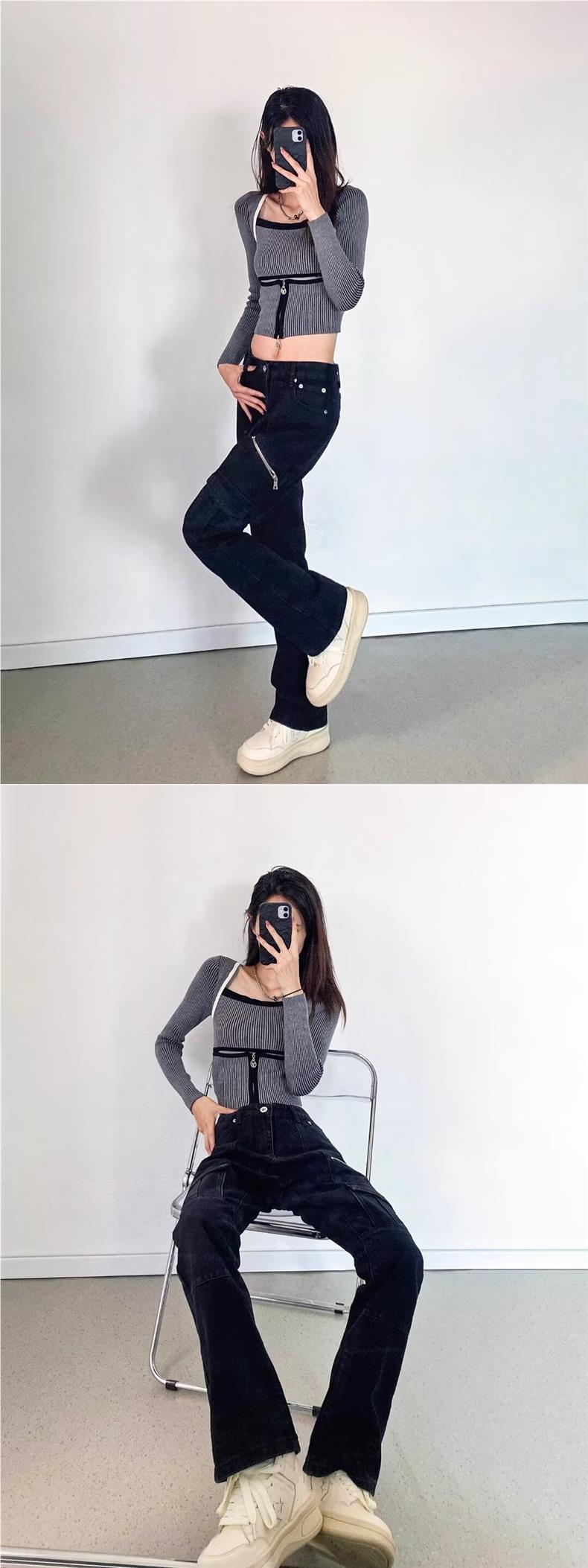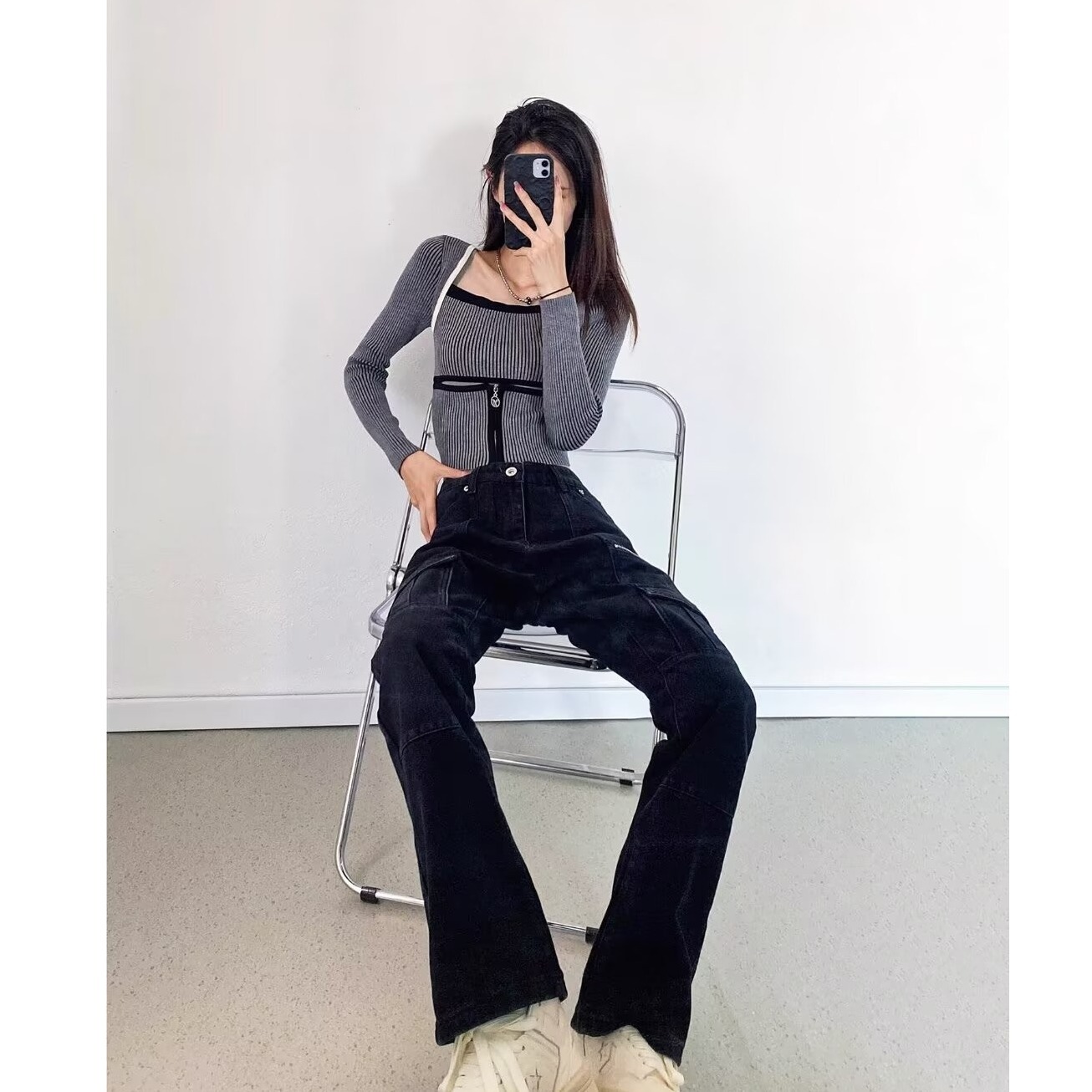 미국 스트리트 블랙 워크 청바지 남성 조수 브랜드 유럽과 미국의 하이 스트리트 분위기 바람 마이크로 혼 팬츠
