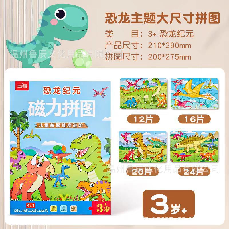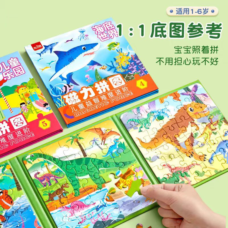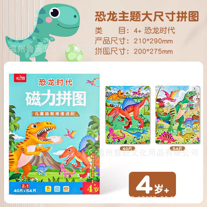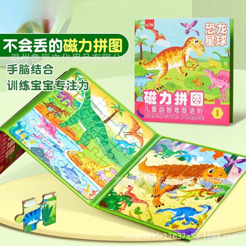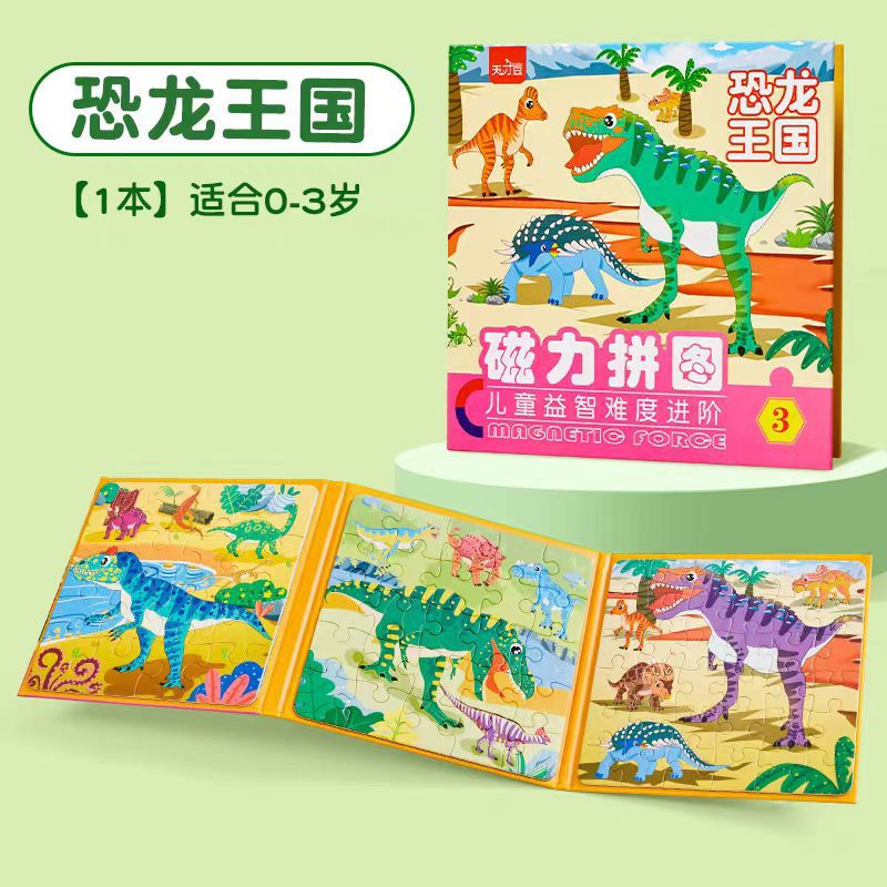 어린이 자석 공룡 퍼즐 2세 입문용 대형 교육용 장난감 3-6세 유아 조립 조기 교육 자석