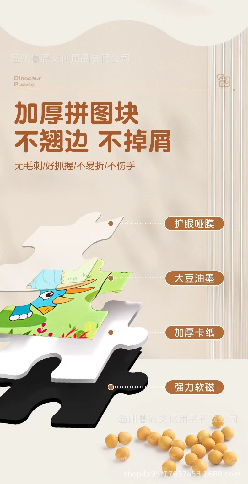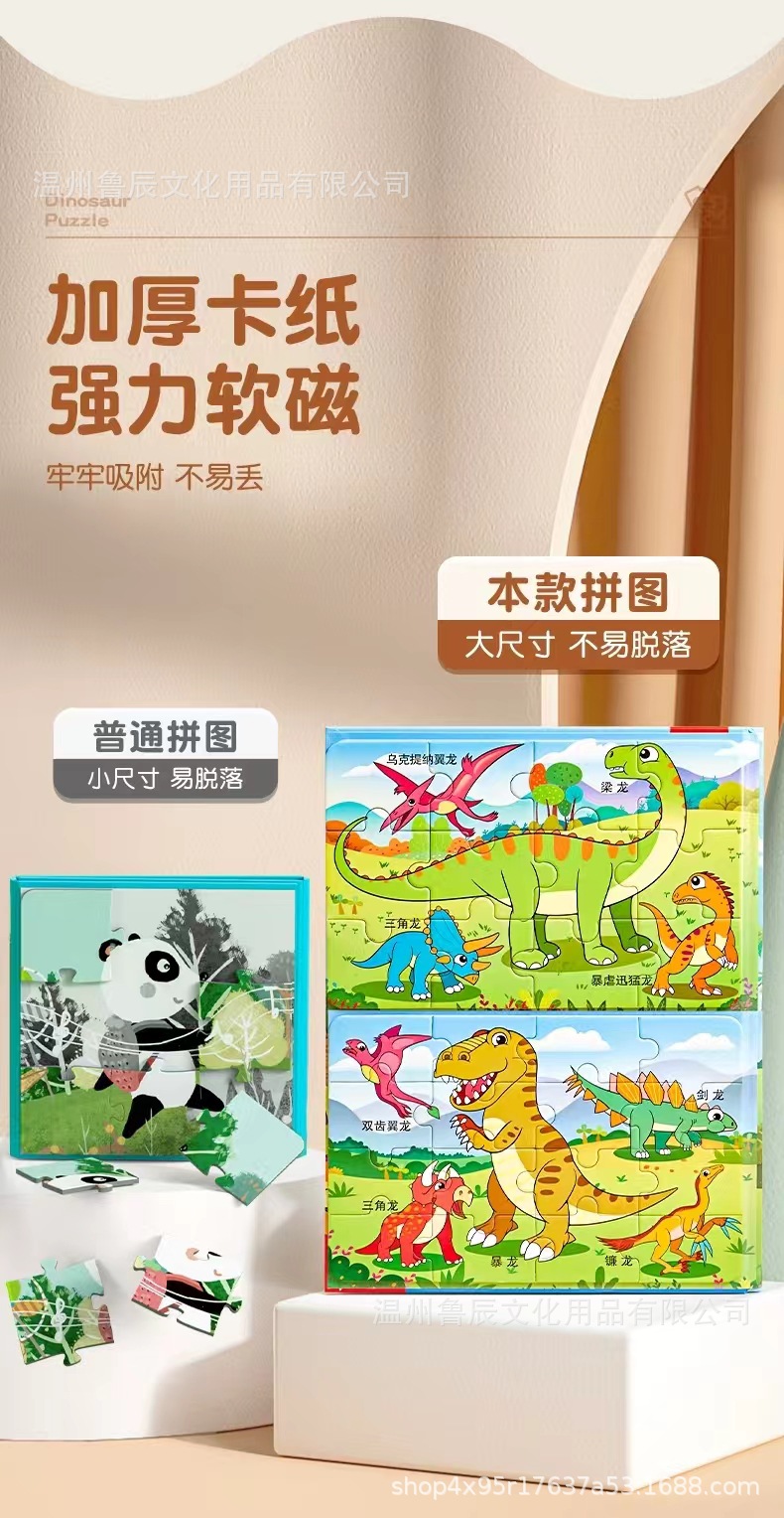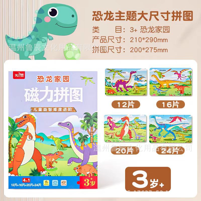 어린이 자석 공룡 퍼즐 2세 입문용 대형 교육용 장난감 3-6세 유아 조립 조기 교육 자석