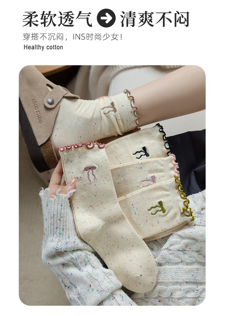 곰팡이 레이스 활 자수 양말 귀여운 파일 양말 가을과 겨울 포인트 원사 뼈없는 달 양말 국경 도매