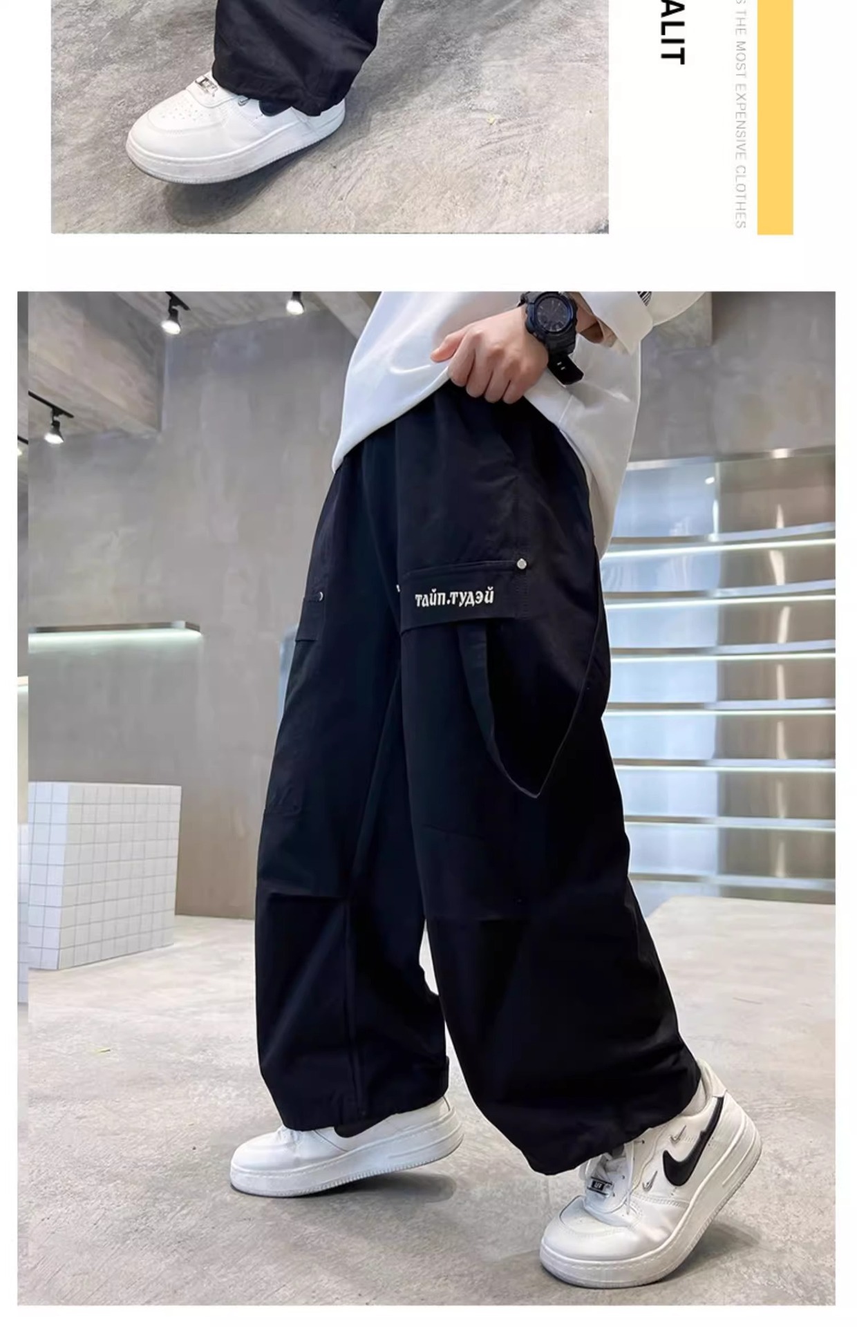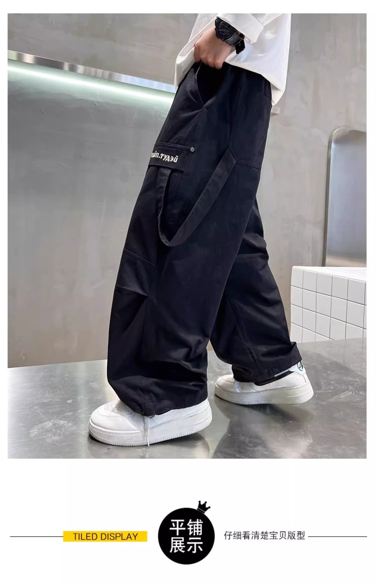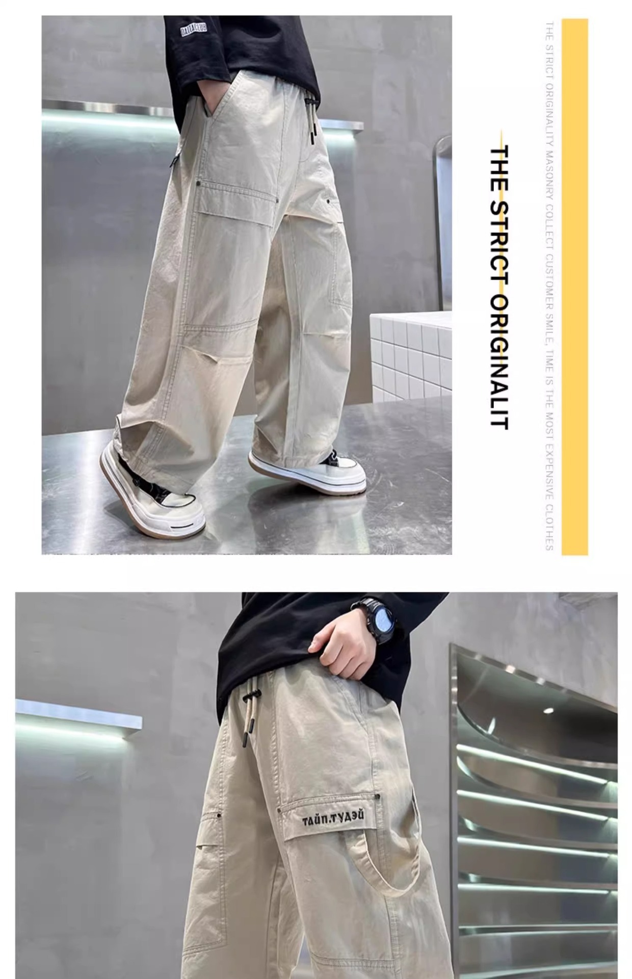 소년 서양식 바지 봄과 가을 2024 새로운 어린이 스트레이트 캐주얼 바지 큰 어린이 가을 크레인 바지스토어 가기