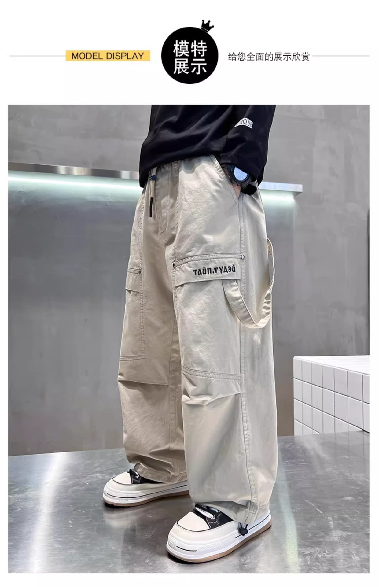 소년 서양식 바지 봄과 가을 2024 새로운 어린이 스트레이트 캐주얼 바지 큰 어린이 가을 크레인 바지