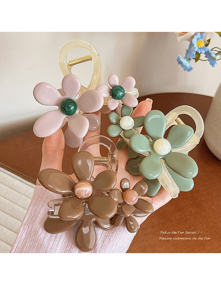 한국식 슈퍼 페어리 플라워 클립 여성용 하이 엔드 센스 우아한 올 매치 헤어핀 2024 새로운 스타일 헤어 상어 클립 헤어 액세서리
