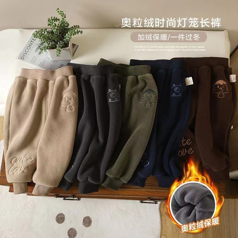 겨울 남학생 양면 아오그레인 벨벳 바지 2024 새 중소형 어린이 원피스 벨벳 캐주얼 바지 아기 여자 따뜻한 바지스토어 가기