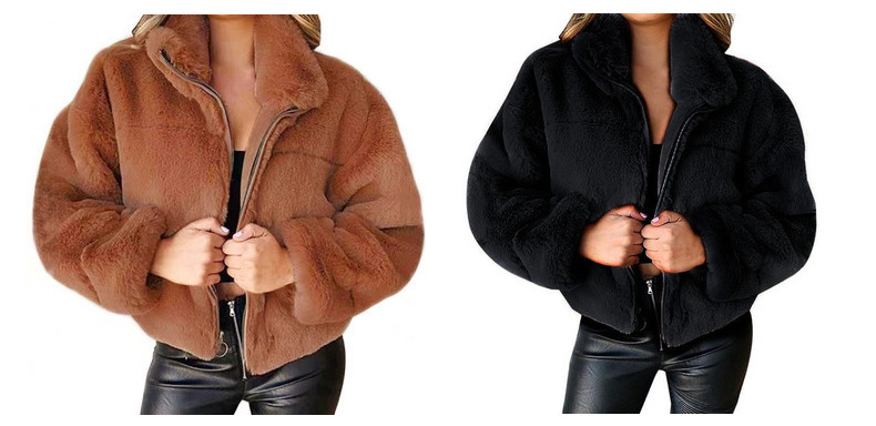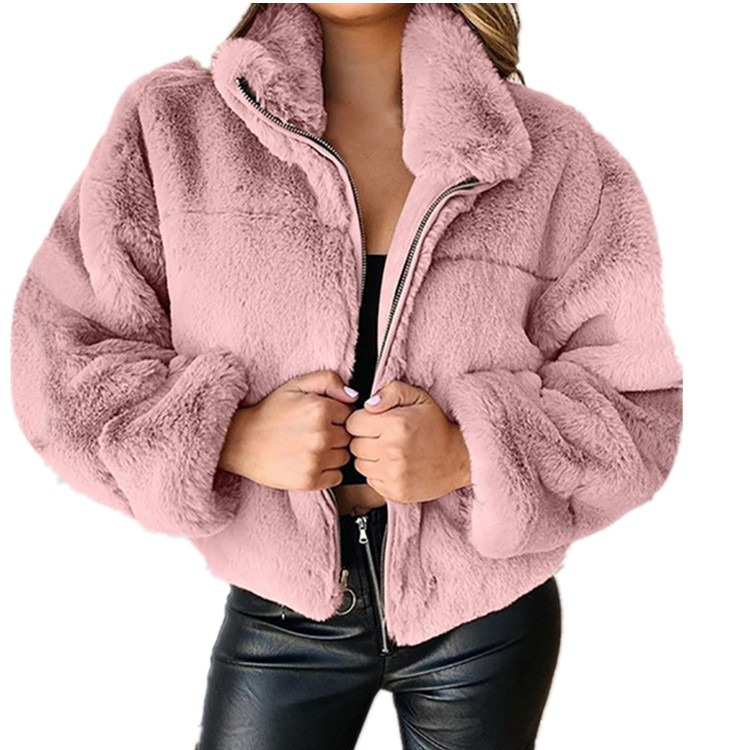 2025년 해외 아마존 인기 유럽 및 미국 여성 의류 가을 겨울 인조 모피 인조 가죽 지퍼 가디건 플러시 보온 재킷스토어 가기