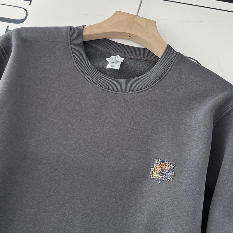 따뜻하게 유지하는 기모! 10 천 바늘 자수 간단한 패션 남자 둥근 목 긴 소매 땀 가을과 겨울 스트레이트 풀오버 탑
