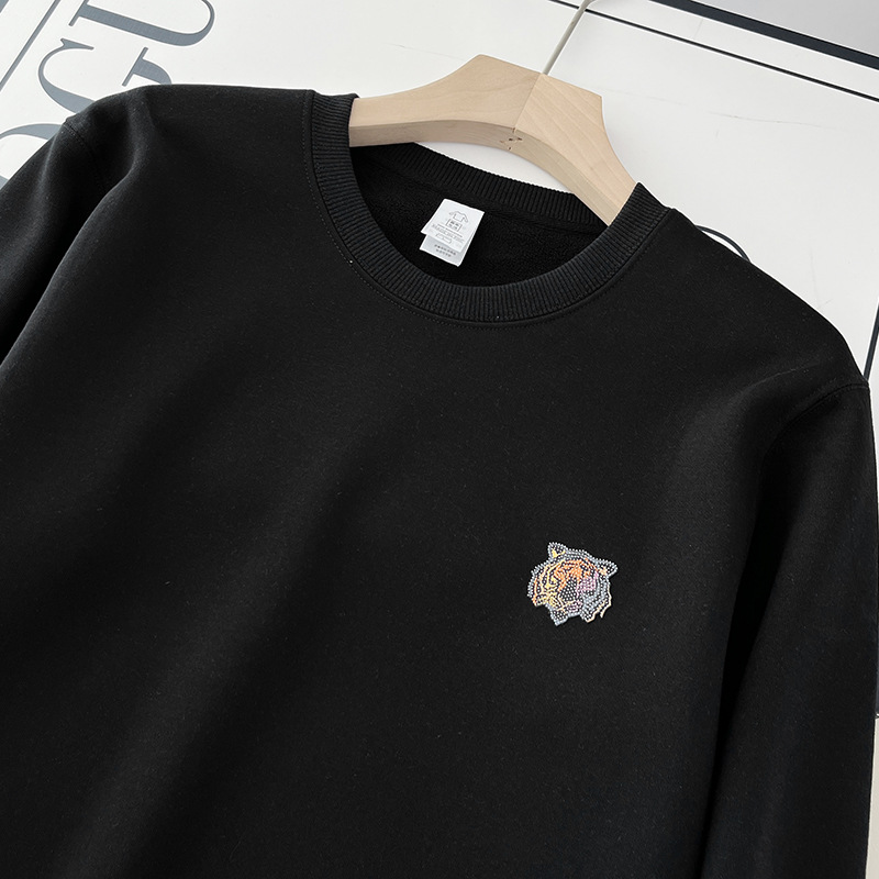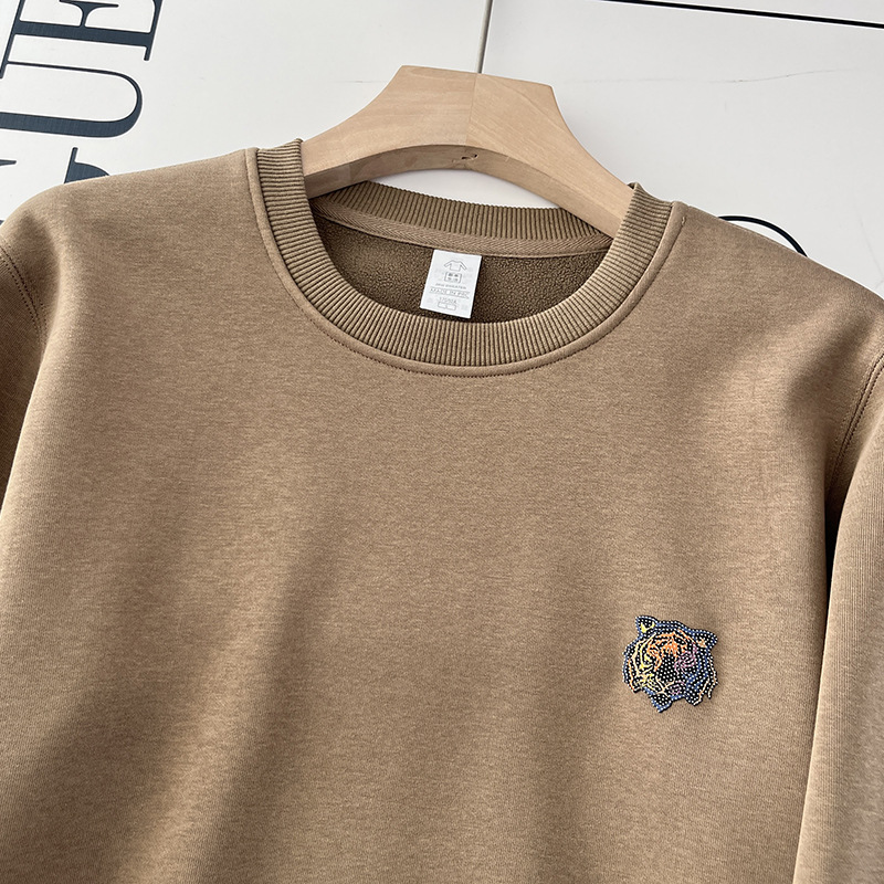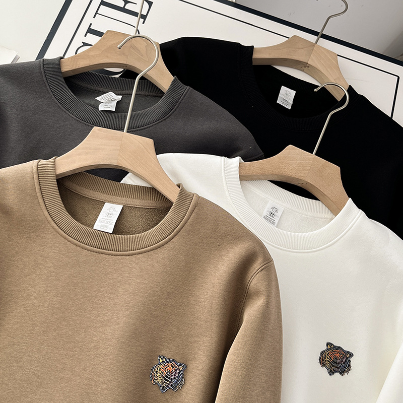따뜻하게 유지하는 기모! 10 천 바늘 자수 간단한 패션 남자 둥근 목 긴 소매 땀 가을과 겨울 스트레이트 풀오버 탑스토어 가기