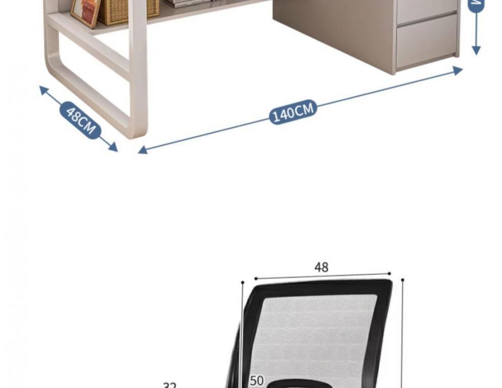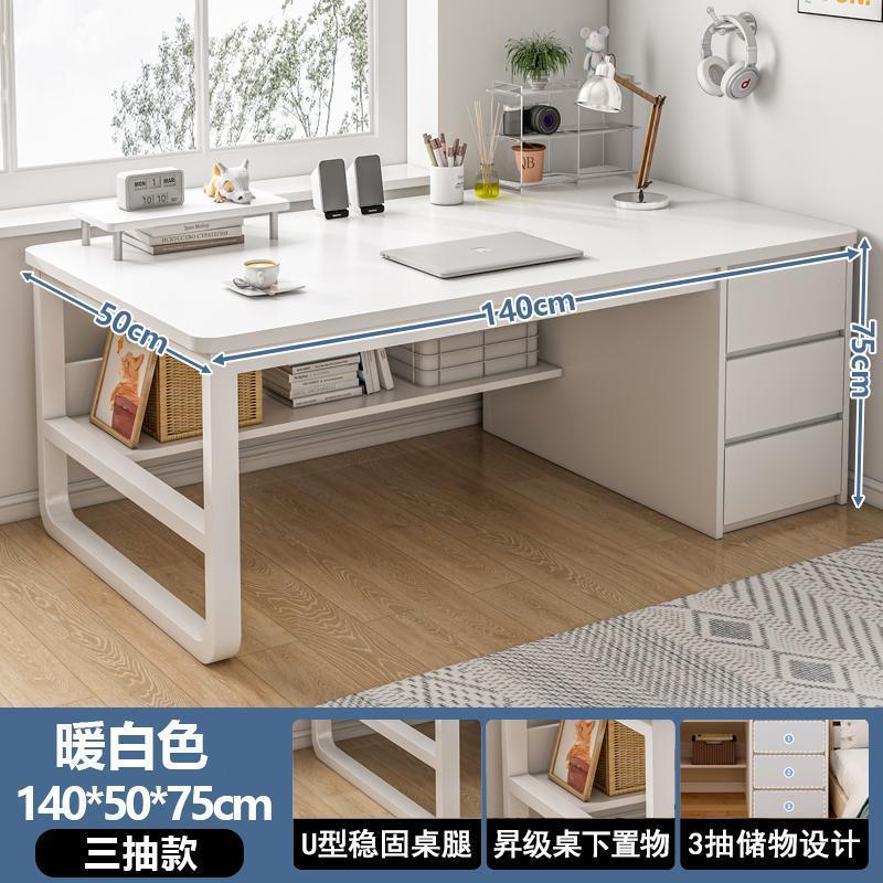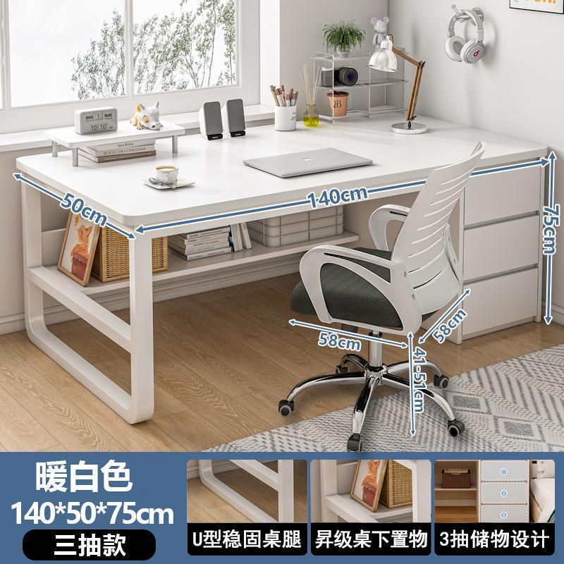 • [업그레이드된 3단서랍+컴퓨터의자] 140CM 웜화이트
