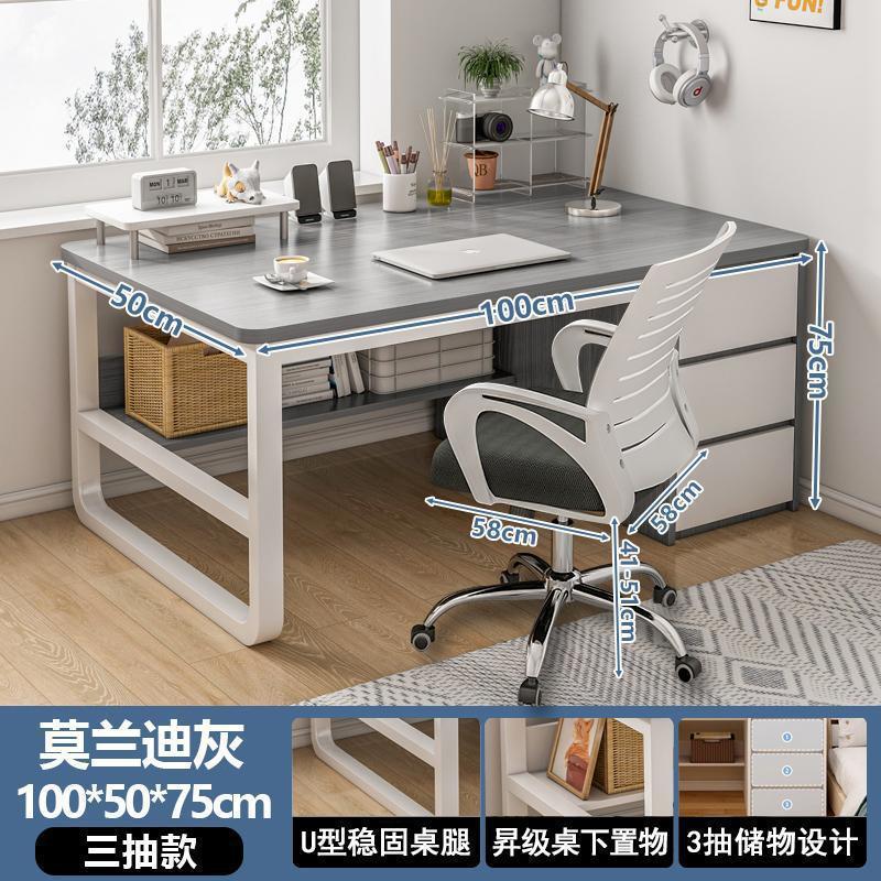 • [업그레이드된 3단서랍+컴퓨터의자] 100CM 모란디 그레이