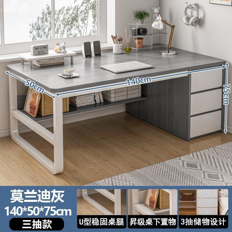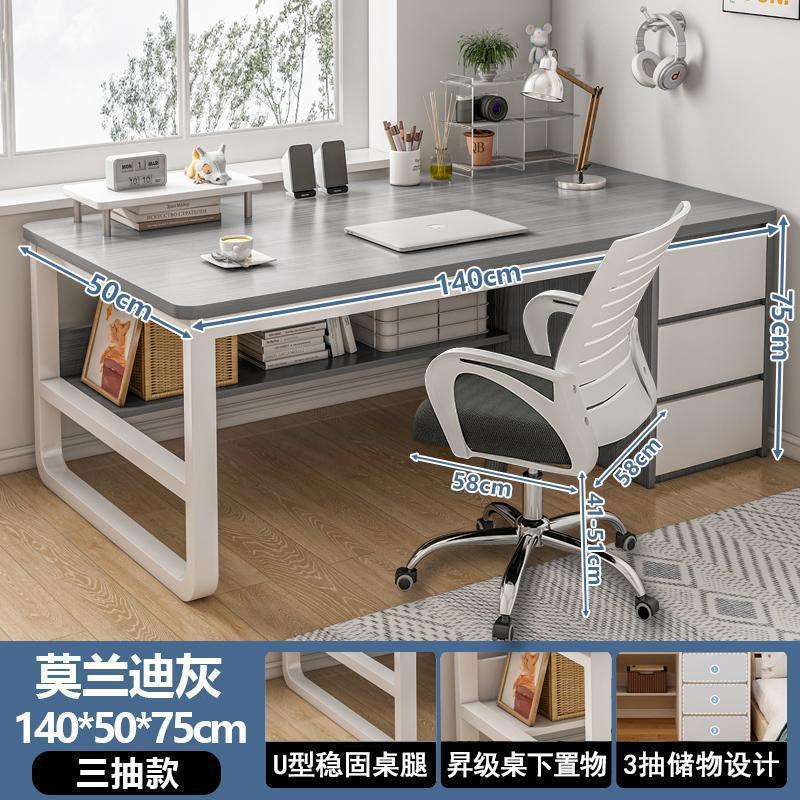 • [업그레이드된 3단서랍+컴퓨터의자] 140CM 모란디 그레이