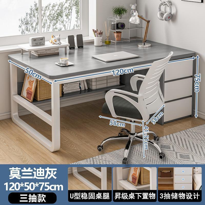 • [업그레이드된 3단서랍+컴퓨터의자] 120CM 모란디 그레이