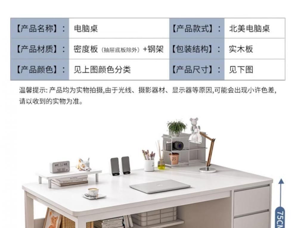 • [업그레이드된 3개 드로우] 120*50CM 웜화이트