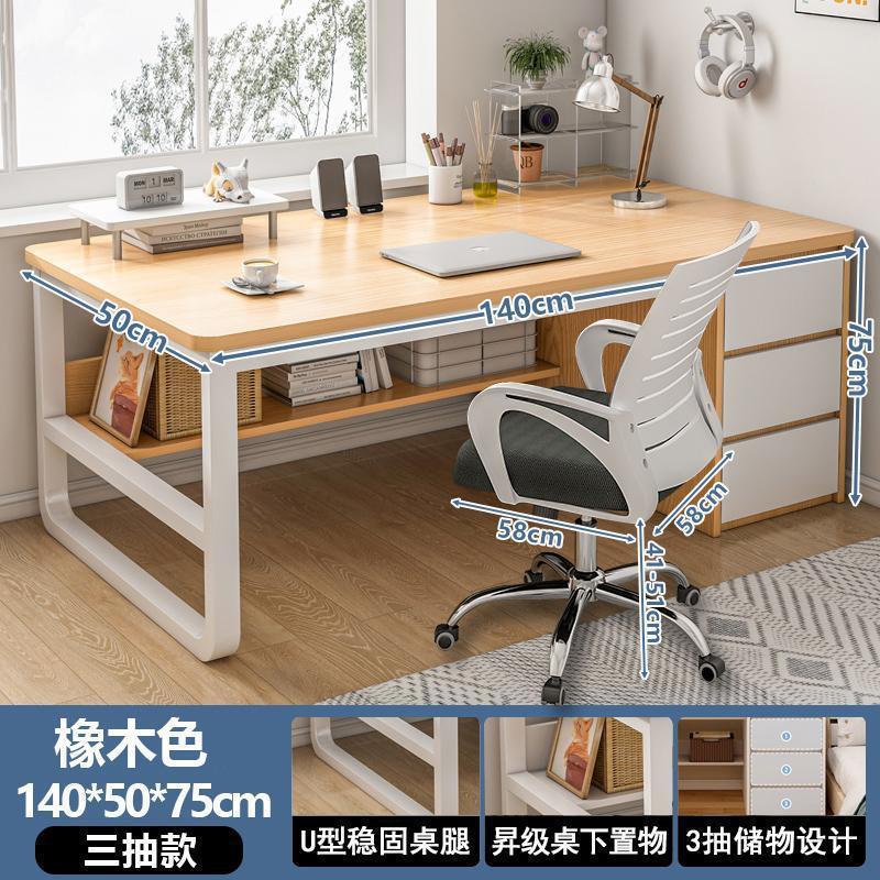 • [업그레이드된 3단서랍+컴퓨터의자] 140CM 오크색상