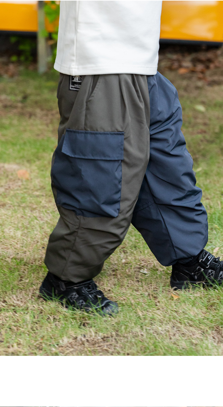2024 겨울 새 소년 다운 바지 두꺼운 따뜻한 캐주얼 바지 어린이 아기 작업복 바지 겨울 더피 잘 생긴