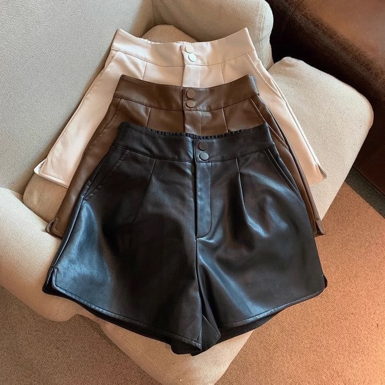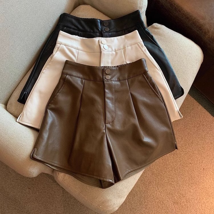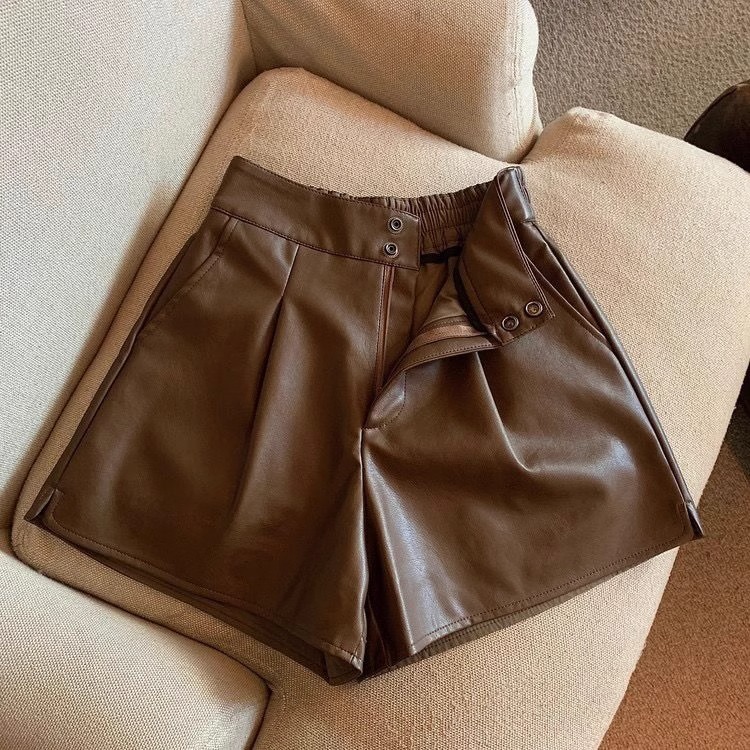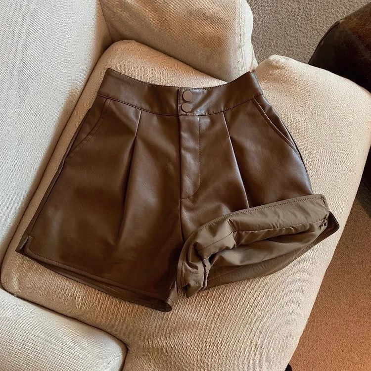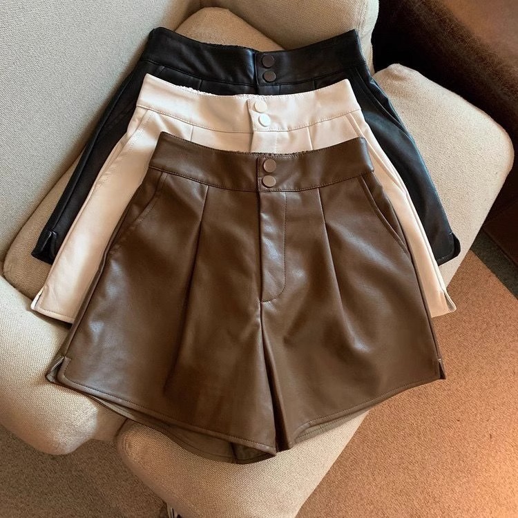 가죽 반바지 여성의 가을과 겨울 외부 착용 2024 넓은 다리를 플러스 사이즈 새로운 높은 허리 가죽 바지 슬림 루즈베이스 부츠 바지스토어 가기