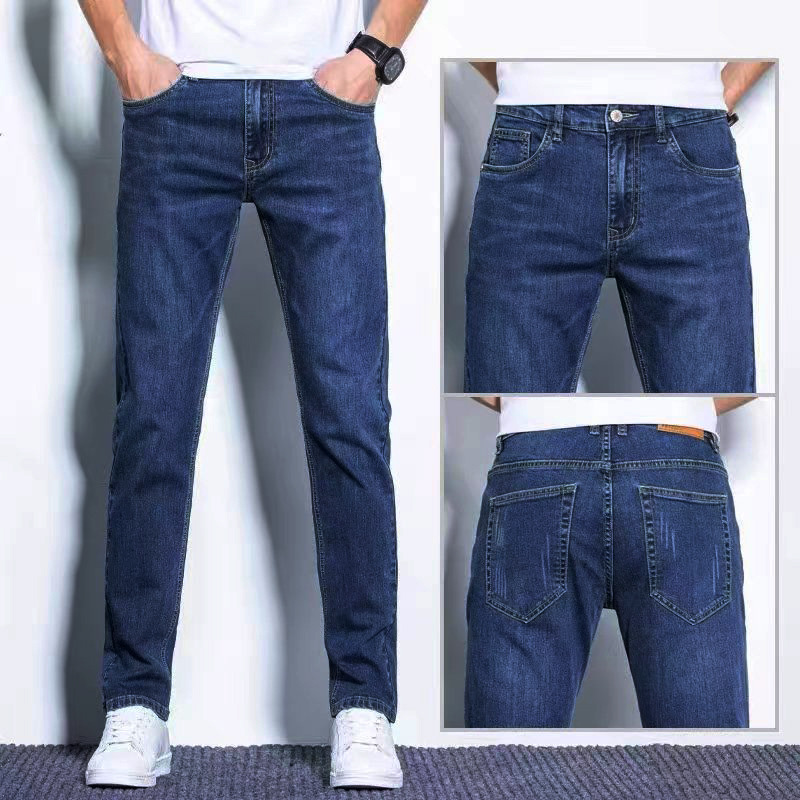 한국 남성 청바지 두꺼운 탄성 슬림 핏 하이 웨이스트 스트레이트 루즈 캐주얼 플러스 사이즈 청소년 툴링스토어 가기