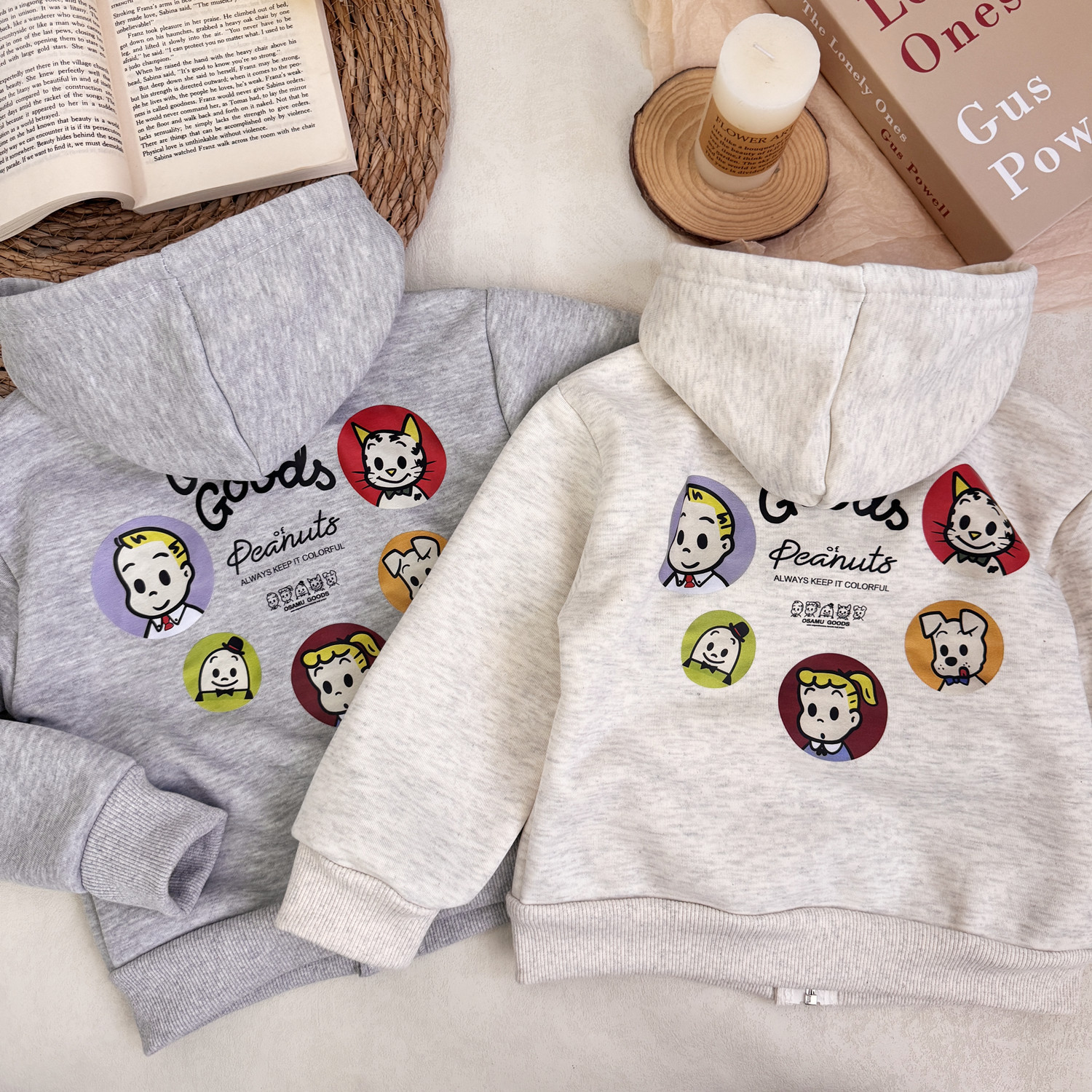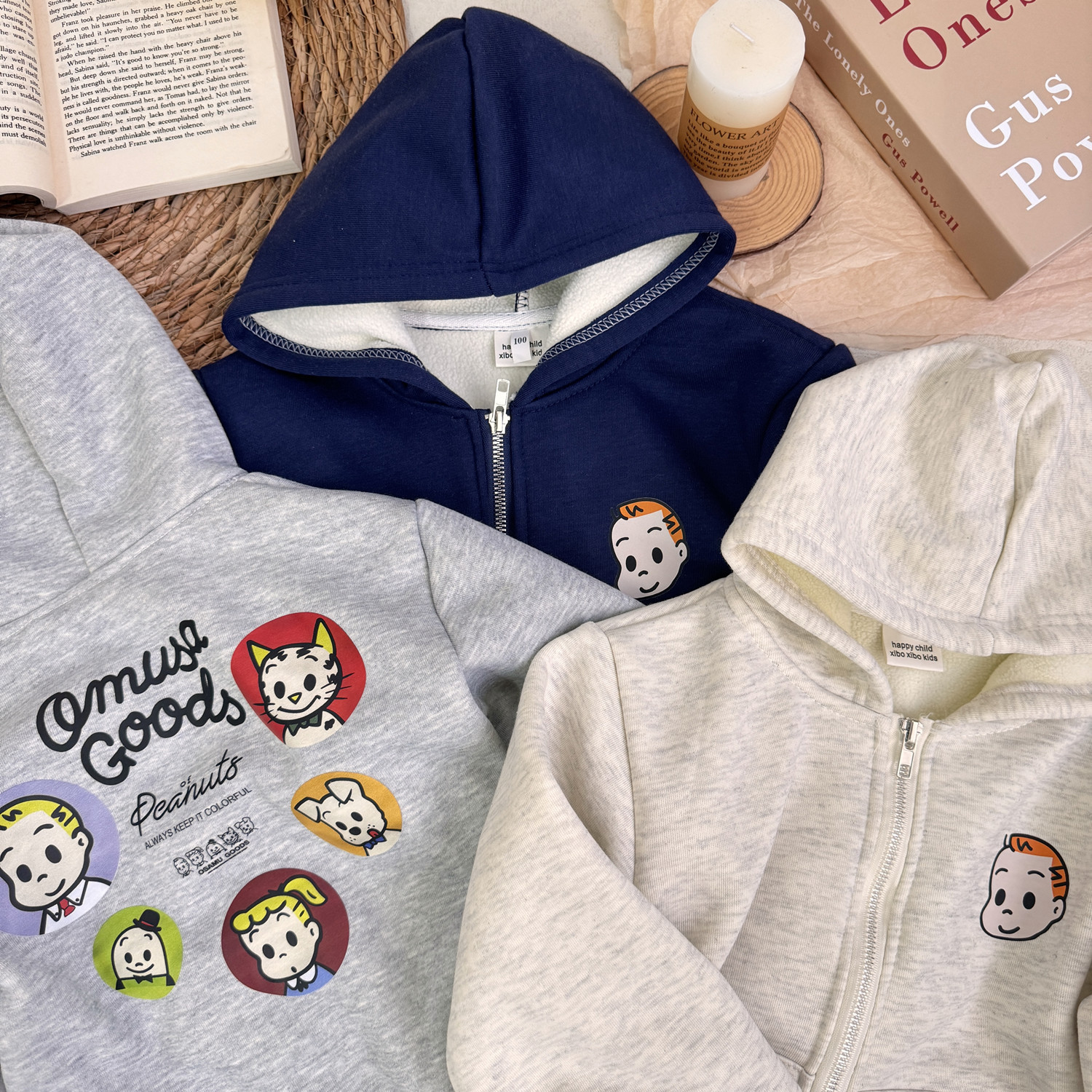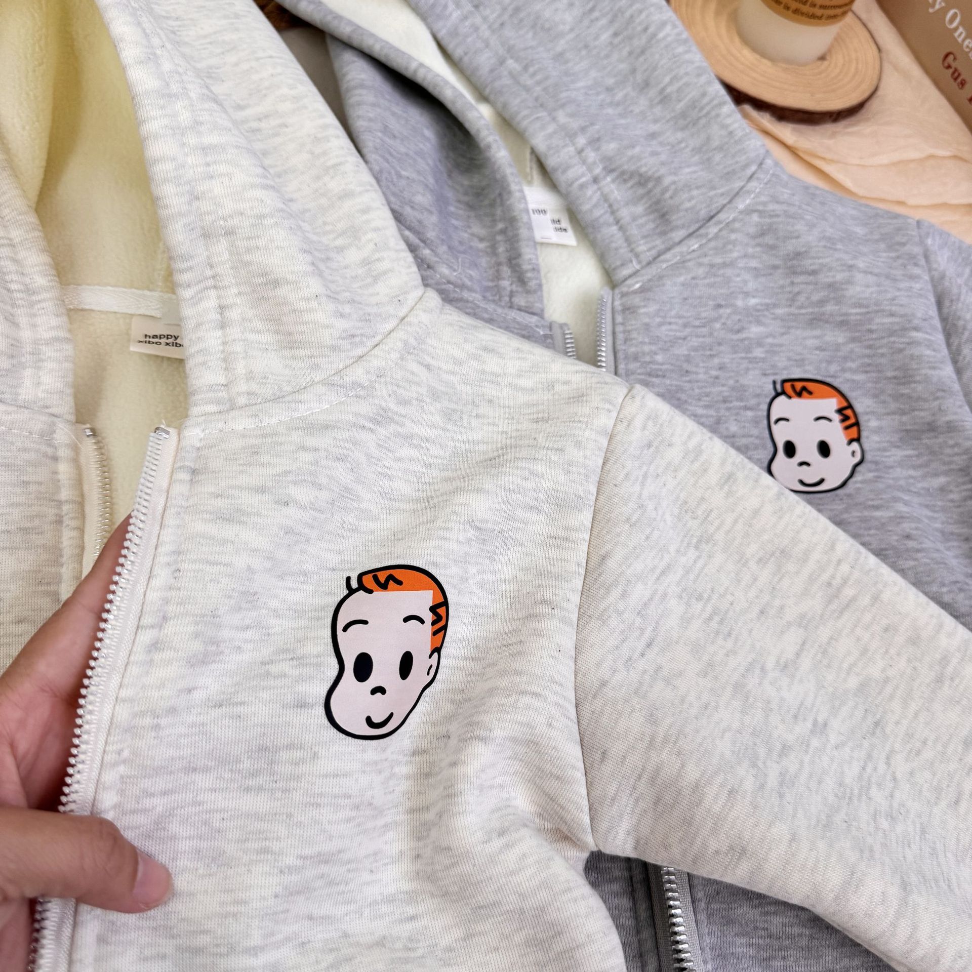 어린이 아기 겨울 느슨한 하라다 만화 귀여운 후드 자켓 소년과 소녀 서양식 어린이 패션 기모스토어 가기
