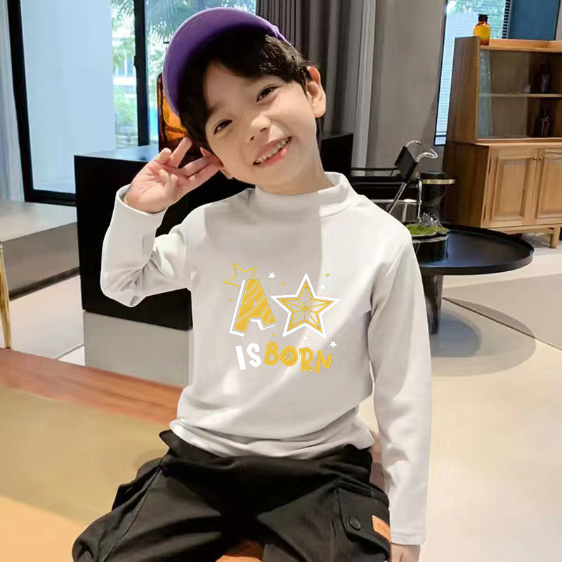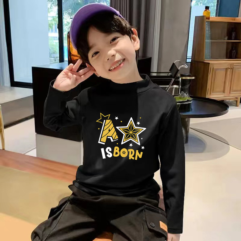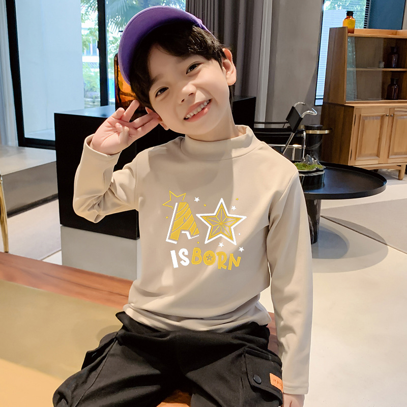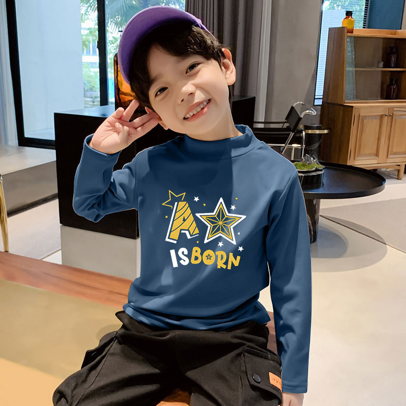 Y2436 # 소년 드 벨벳 바닥 셔츠 가을과 겨울 어린이 따뜻한 티셔츠 작은 소년 세미 하이 칼라 긴 소매 티셔츠