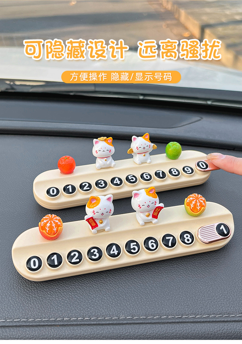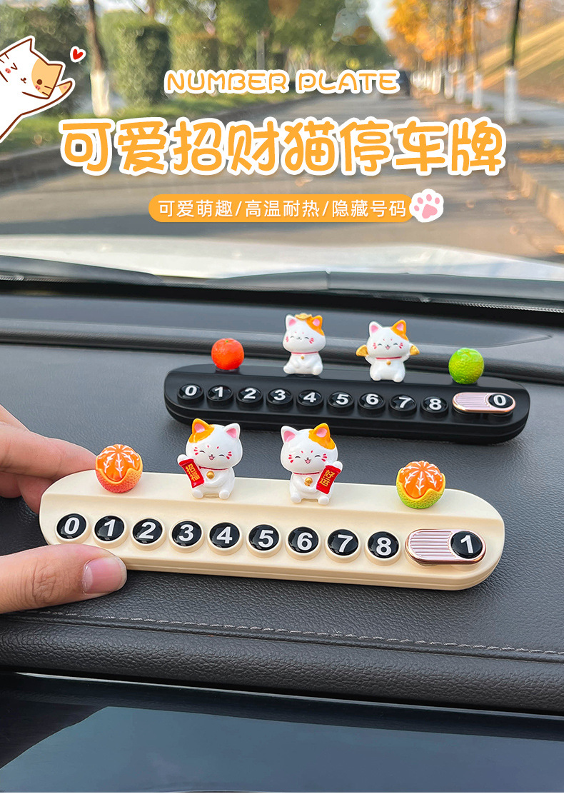 행운의 고양이 자동차 임시 주차 번호판, 여성용 이동식 전화번호판, 차량용 휴대폰 번호판, 숨길 수 있는 창의적인 용품