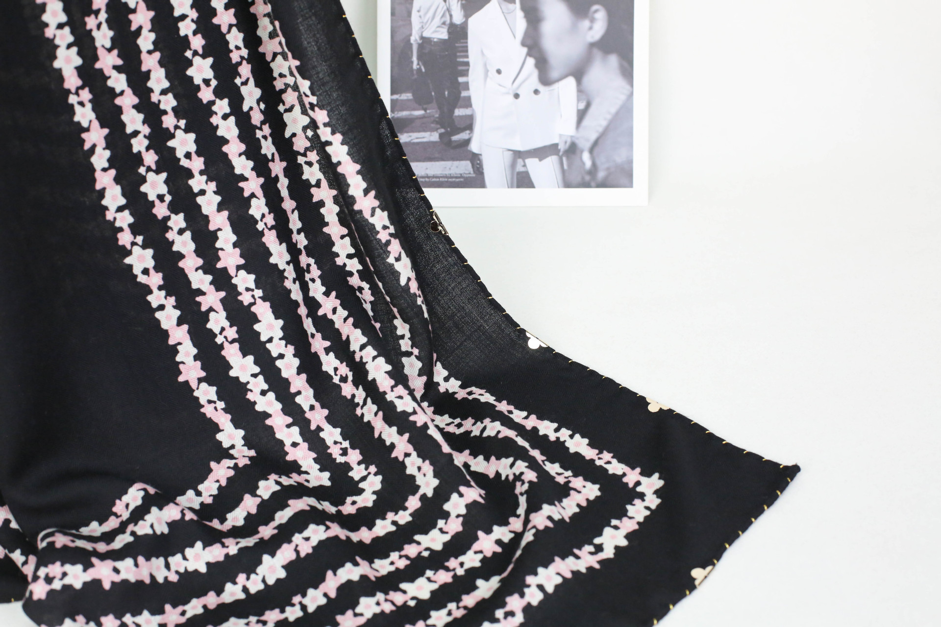 성운 달꽃 노래 패션 우아한 네 잎 클로버 골드 버튼 손으로 압연 양면 실크 울 실크 스카프