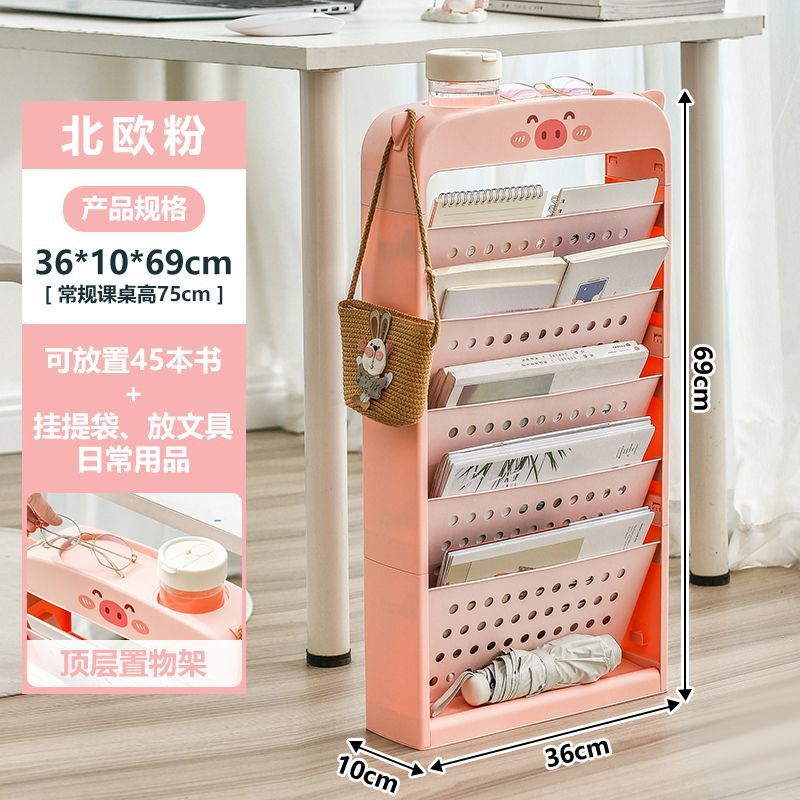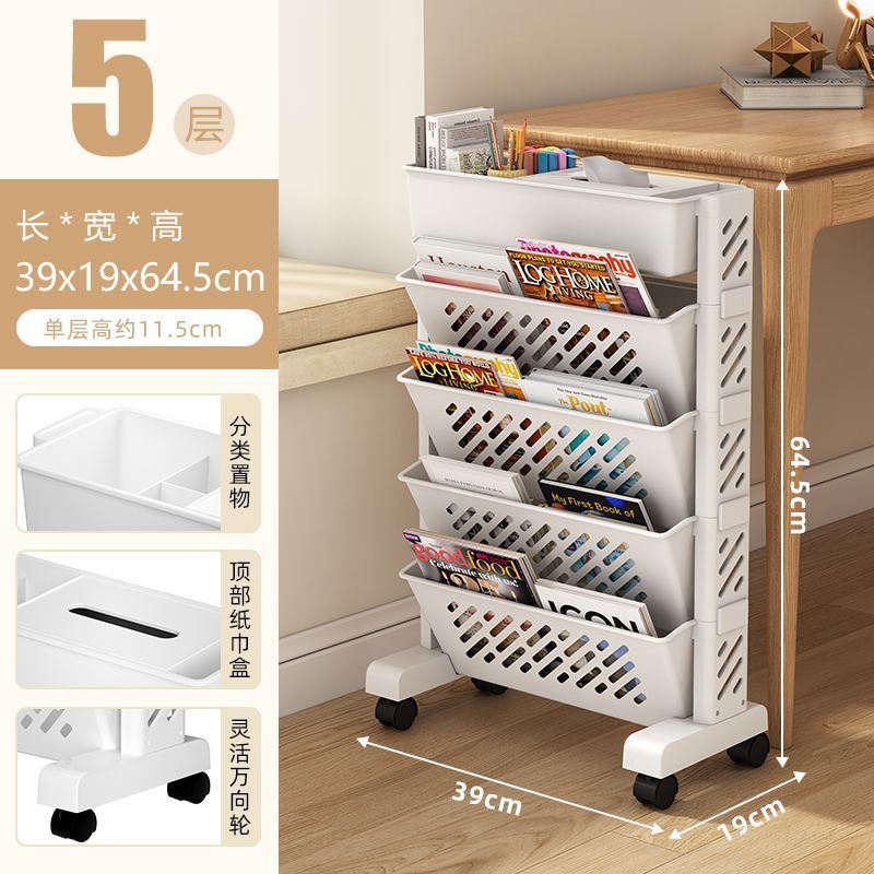 학생 책상 보관 랙 모바일 책장 다층 학습 보관 랙 움직일 수있는 그림 책 보관 상자 책장 테이블 측면