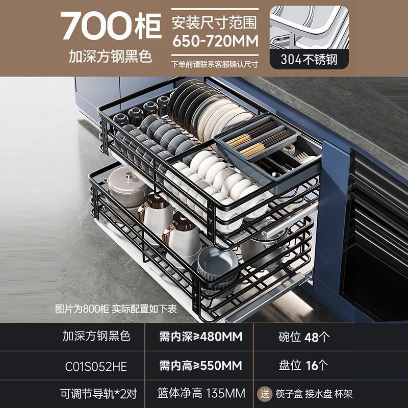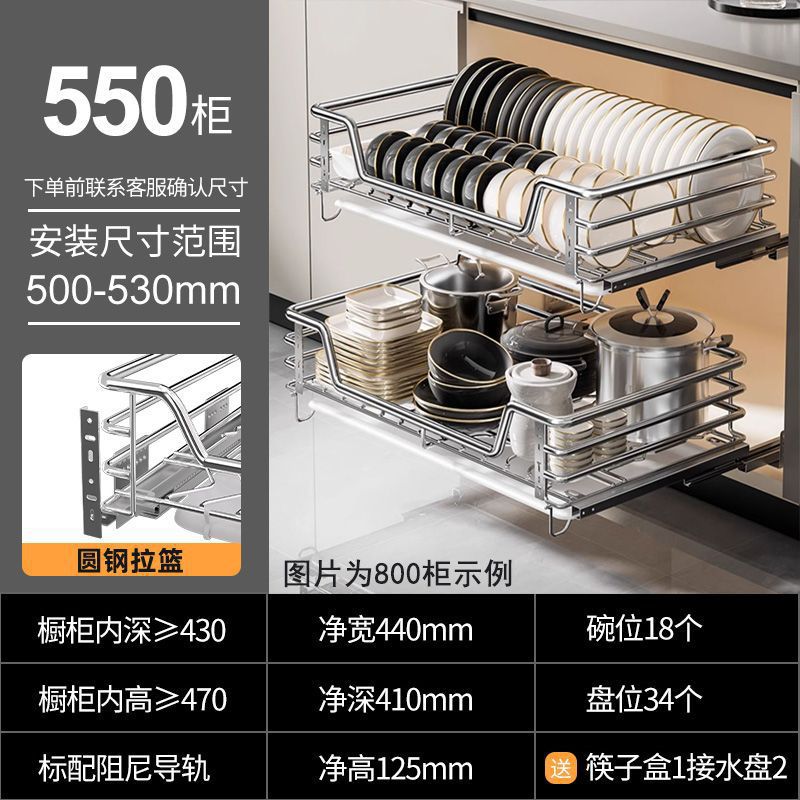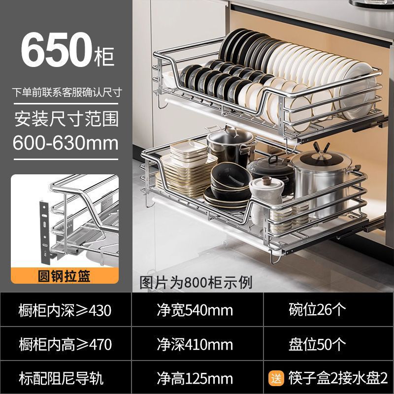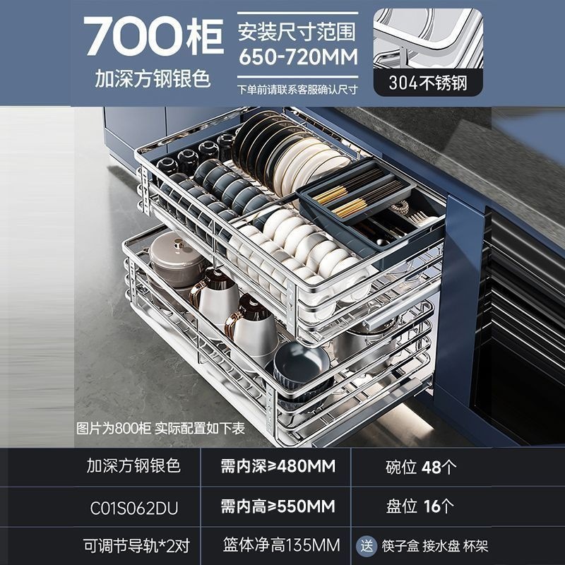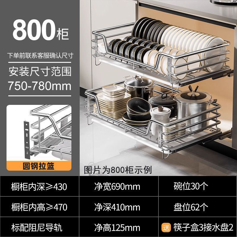 업그레이드 된 서랍 바구니 주방 캐비닛 304 스테인레스 스틸 더블 레이어 서랍 접시 랙 찬장 주방 캐비닛 그릇 바구니