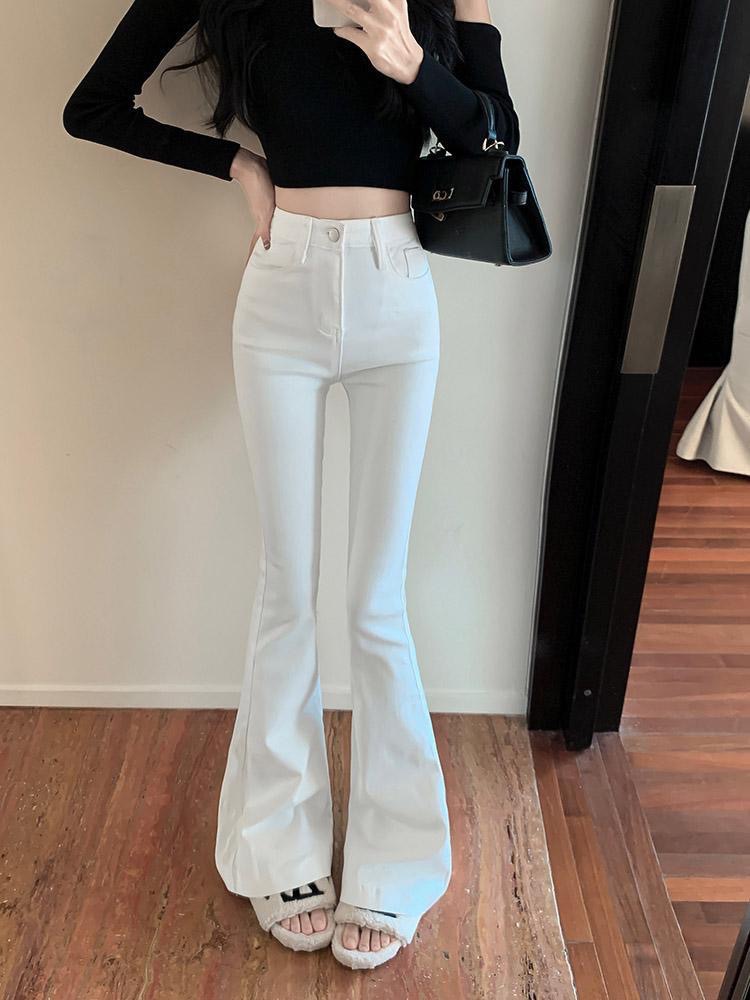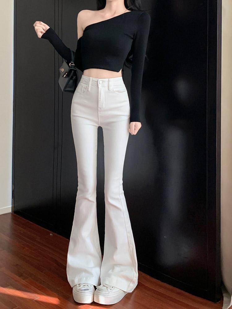 화이트 하이 허리 청바지 여성의 2025 봄 새로운 스트레치 슬림 핏 슬리밍 스트레이트 팬츠 스파이스 걸스 약간의 바지스토어 가기