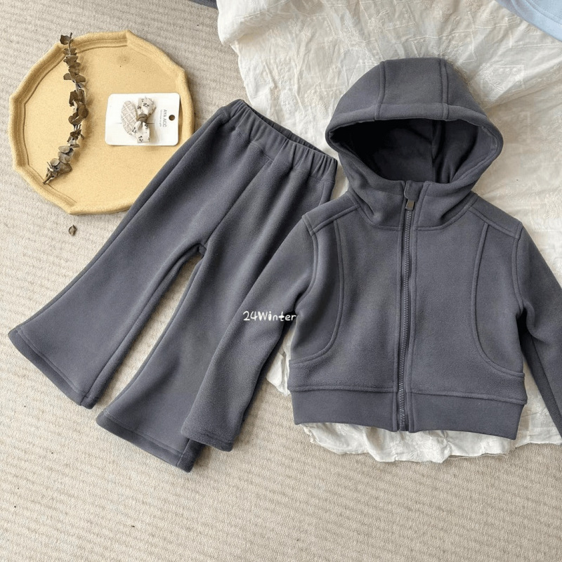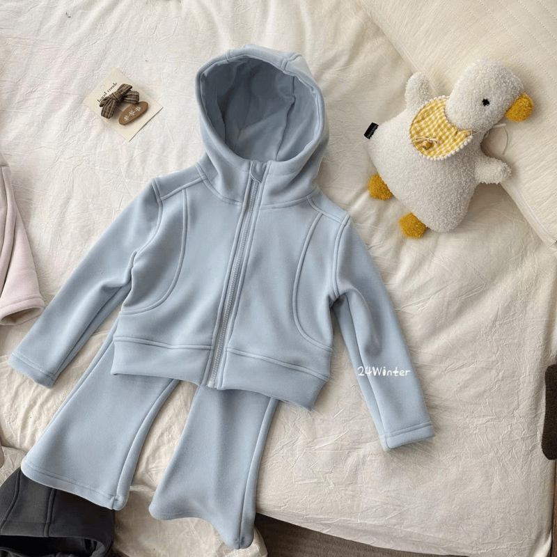소녀들의 가을과 겨울 2024 한국식 올매치 바느질 솔리드 컬러 세트 후드와 지퍼가 달린 여자 투피스 패셔너블 탑