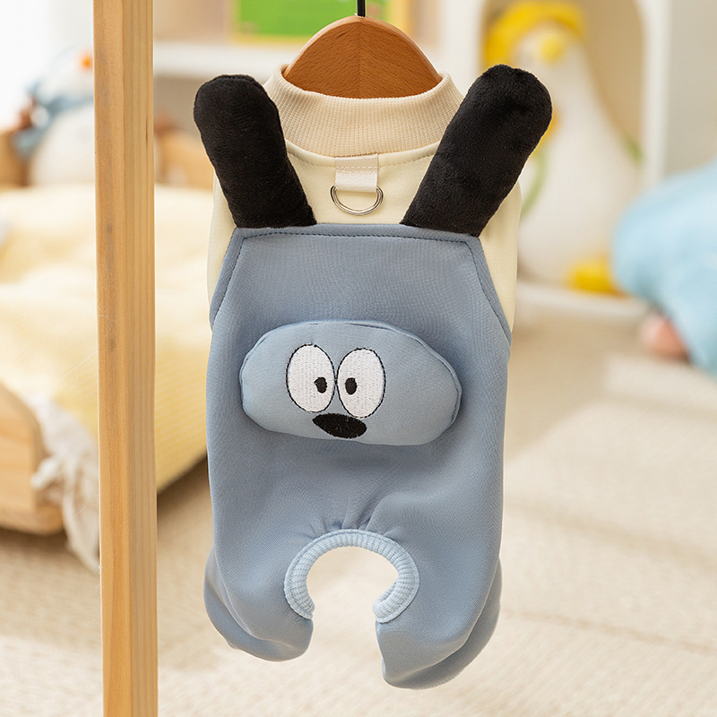 파란 큰 귀 3 차원 코 가방 네 다리 고양이 옷 가을과 겨울 두꺼운 애완 동물 고양이 옷