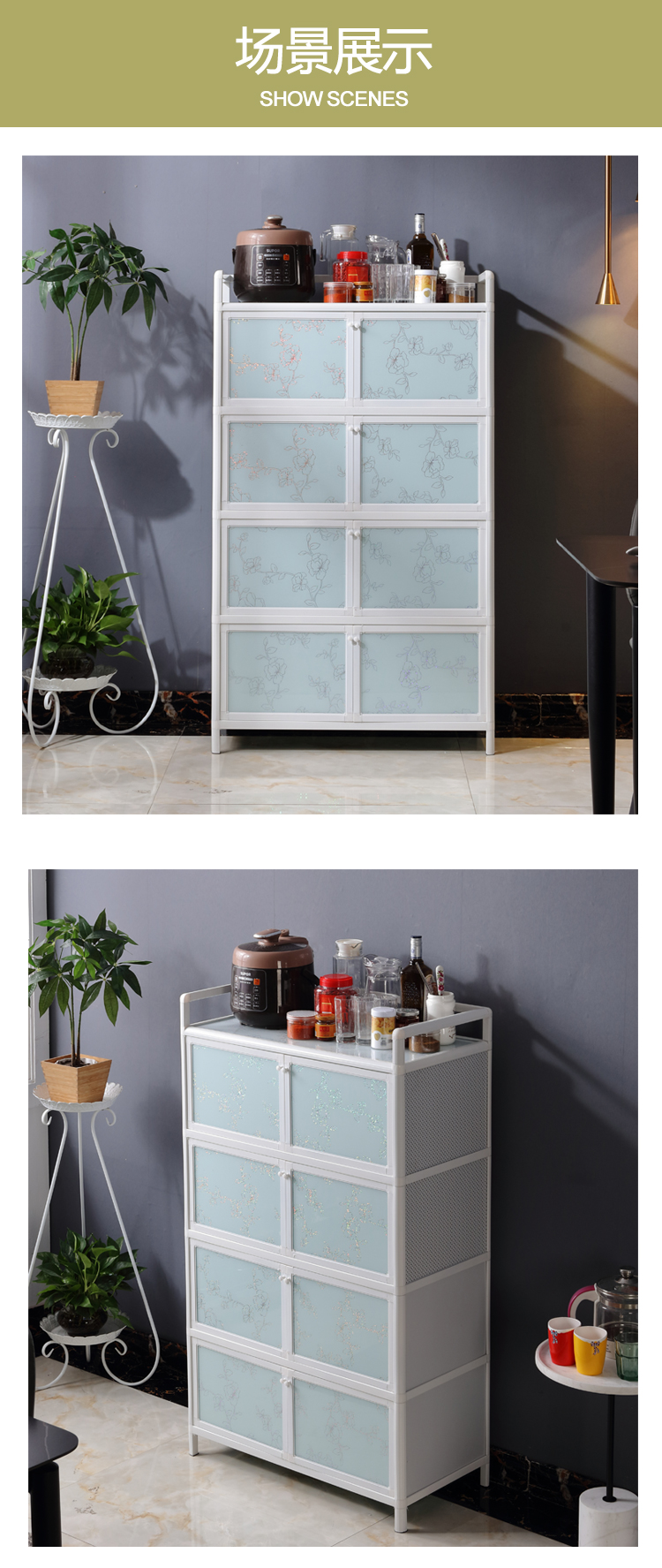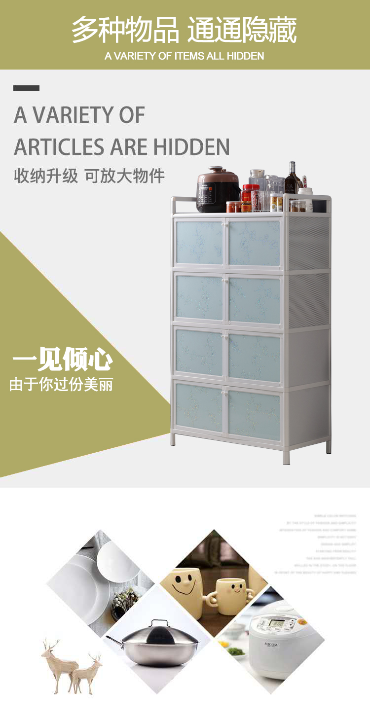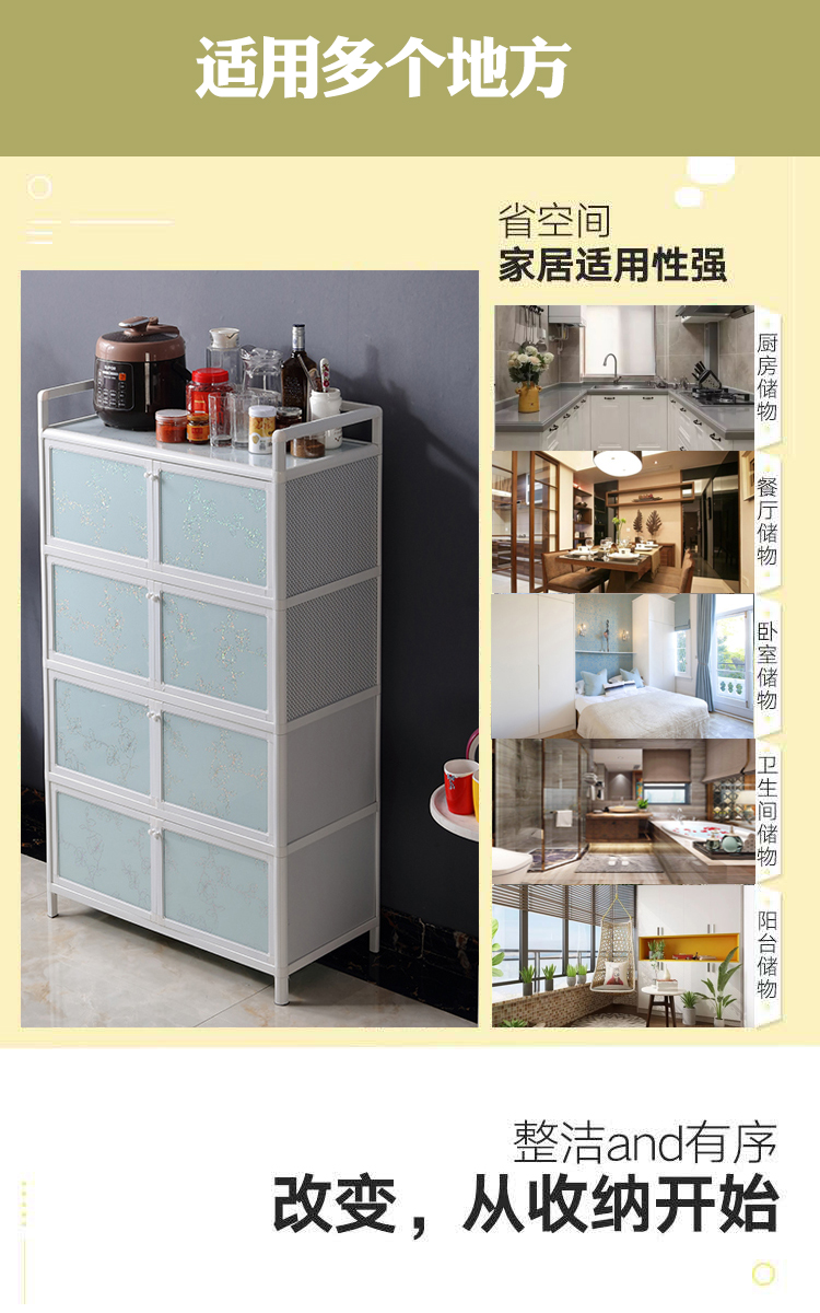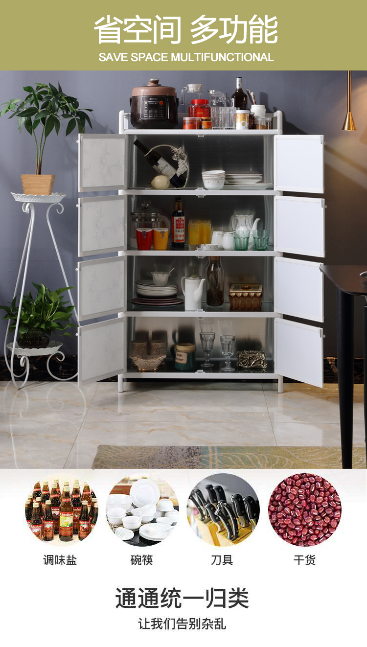 알루미늄 합금 캐비닛 도어 가정용 경제적 인 찬장 사이드 보드 스테인레스 스틸 주방 새로운 스타일을 가진 간단한 저장 캐비닛스토어 가기