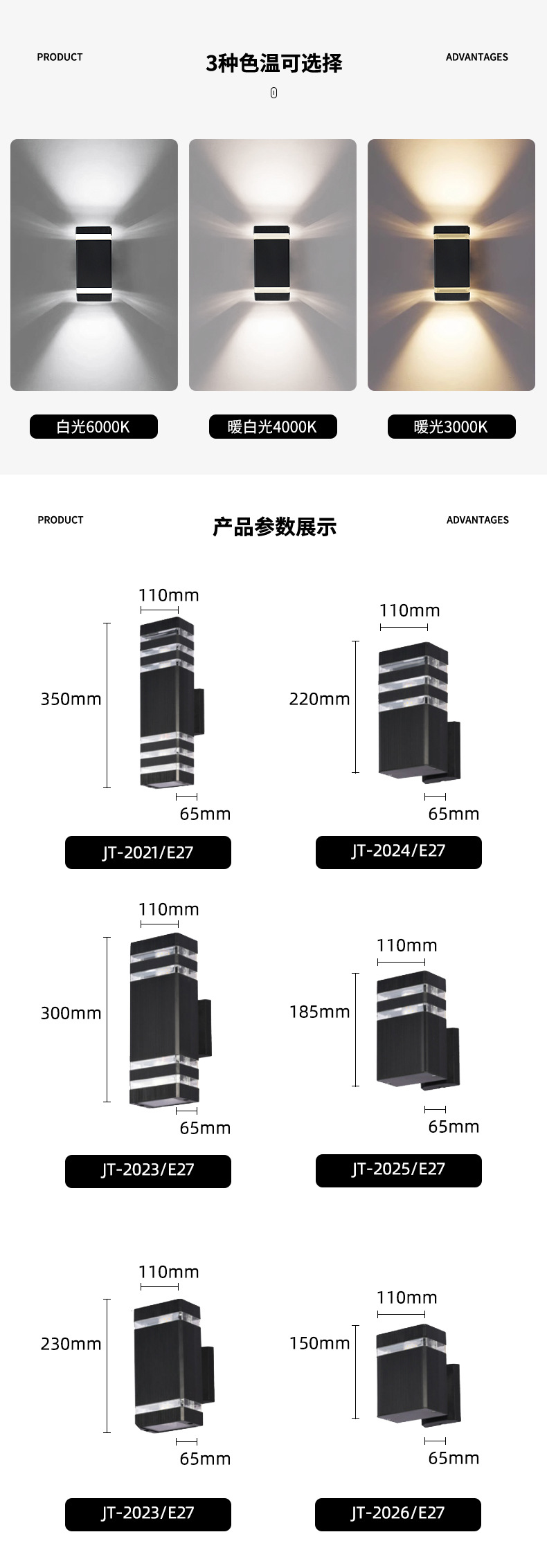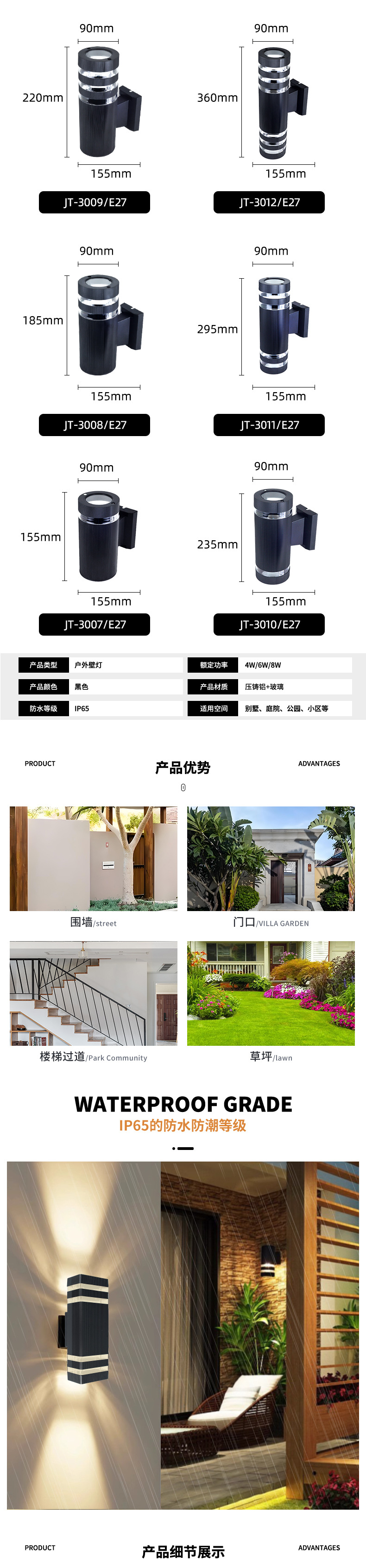 야외 벽 램프 방수 벽 램프 더블 헤드 위아래로 빛나는 안뜰 복도 문 앞 광장 E27 램프 홀더