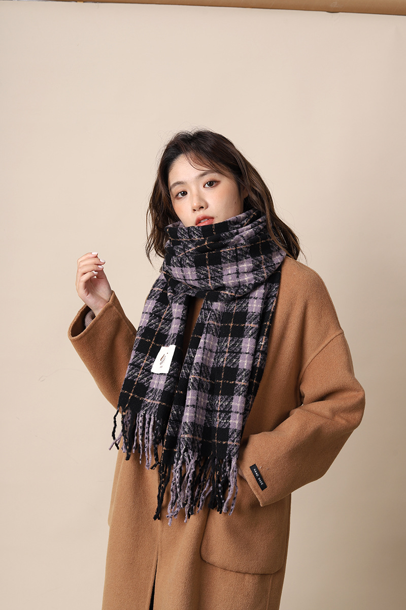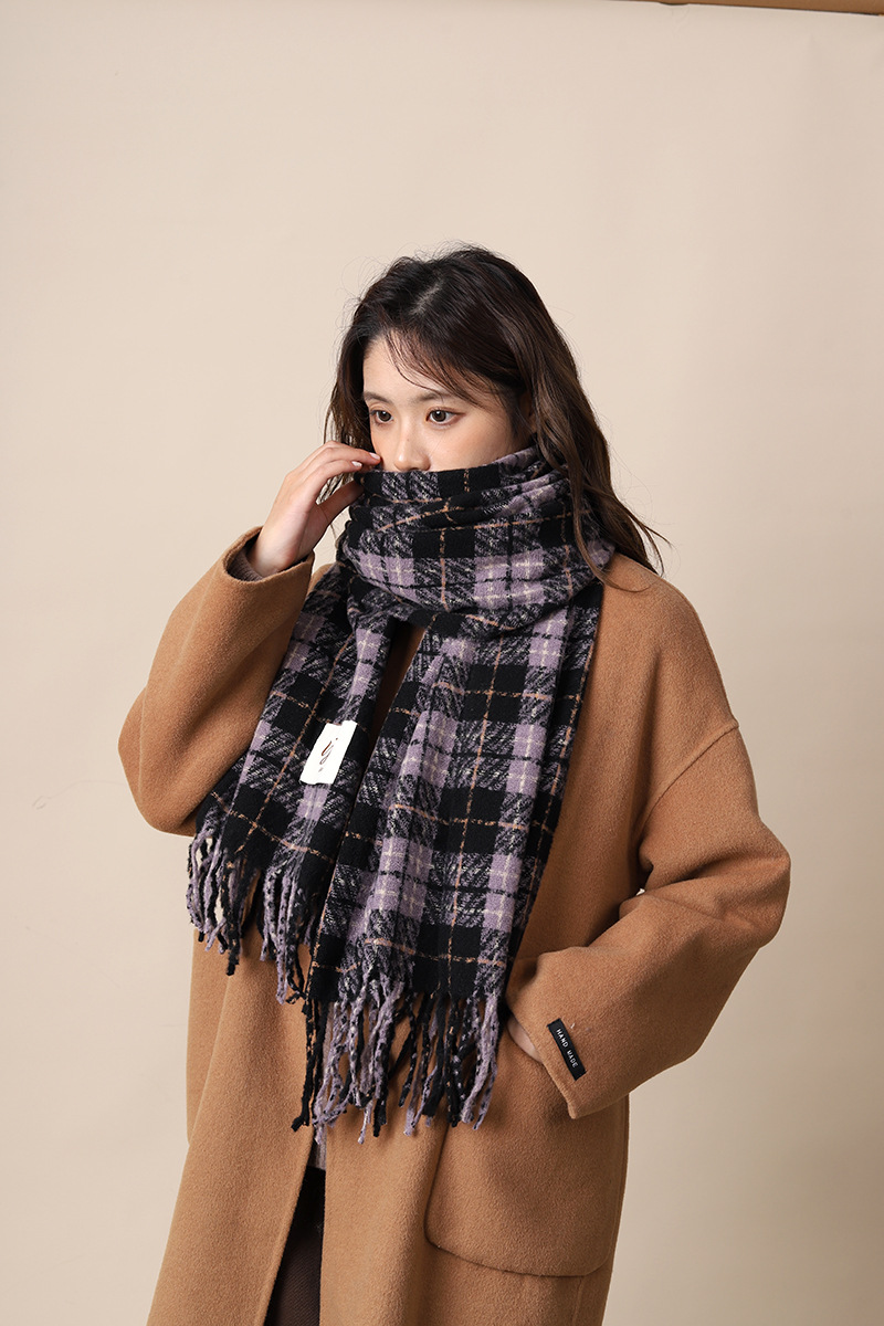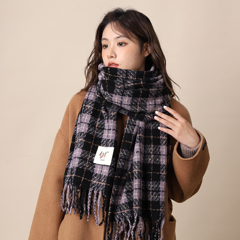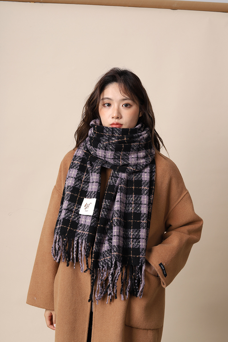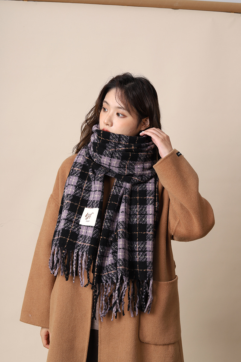 격자 무늬 스카프 여자 겨울 2024 새로운 바이올렛 따뜻한 목 가을과 겨울 분위기 하이 엔드 센스 올 매치스토어 가기