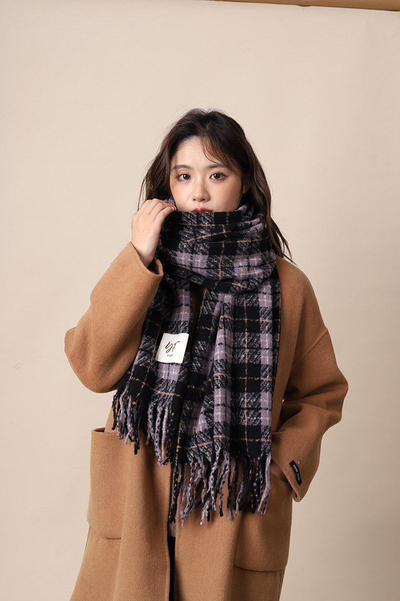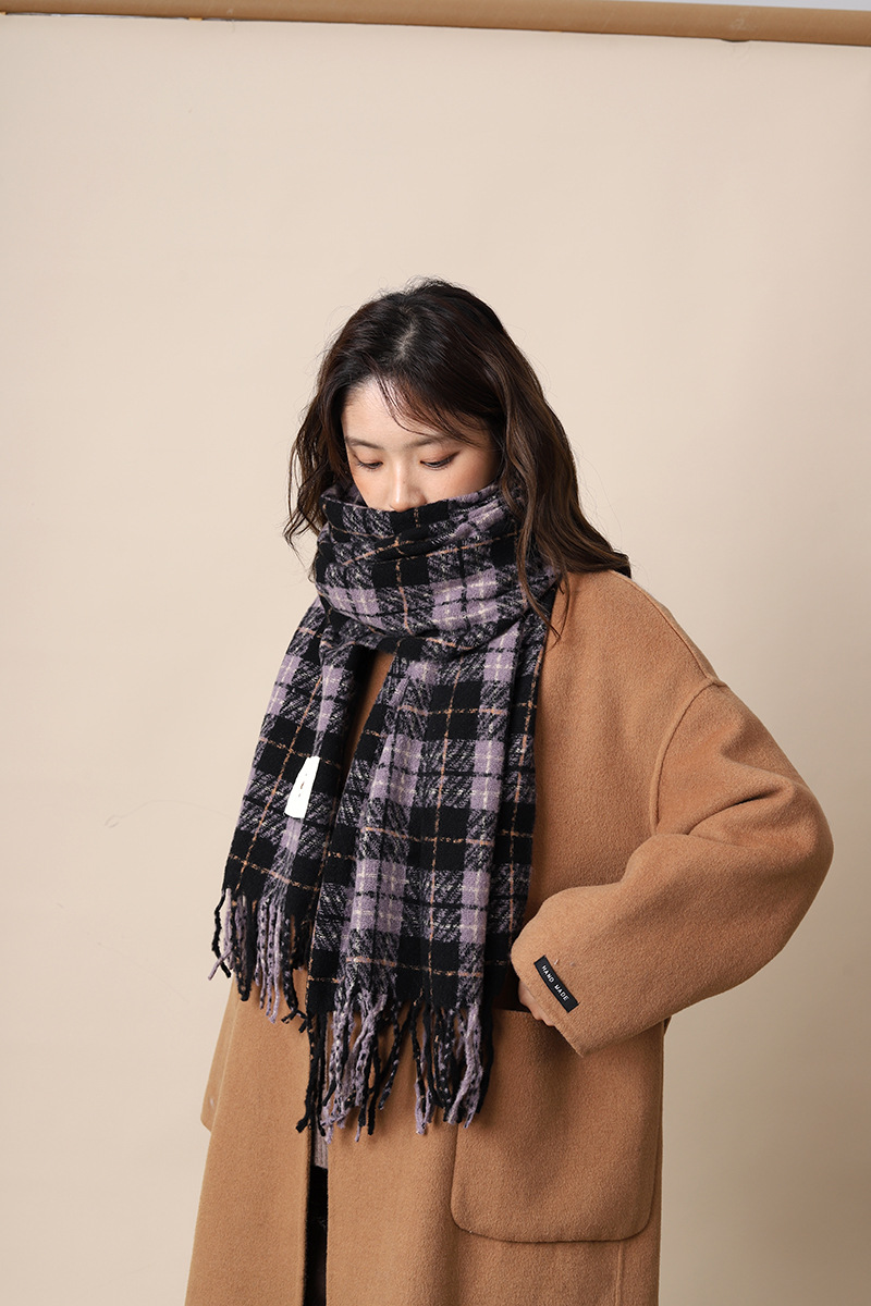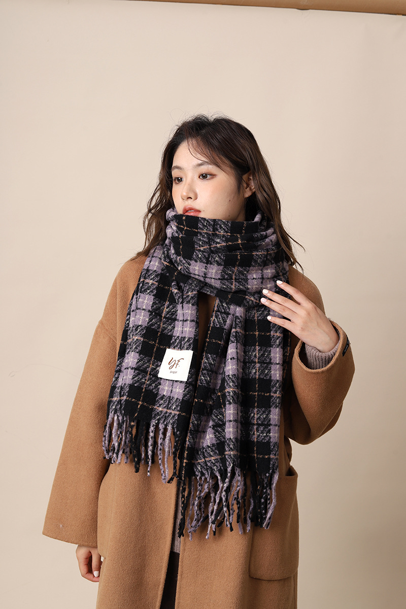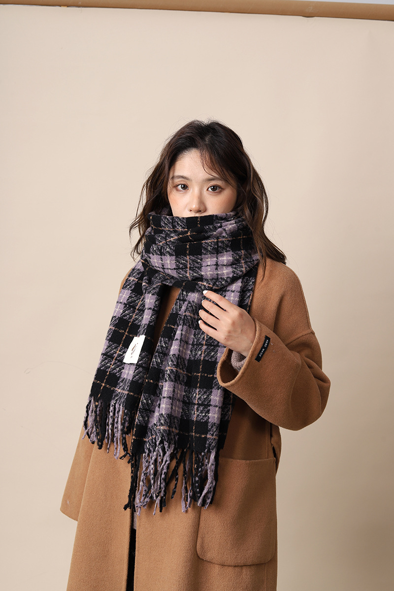 격자 무늬 스카프 여자 겨울 2024 새로운 바이올렛 따뜻한 목 가을과 겨울 분위기 하이 엔드 센스 올 매치스토어 가기