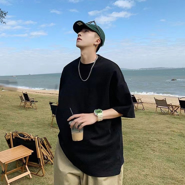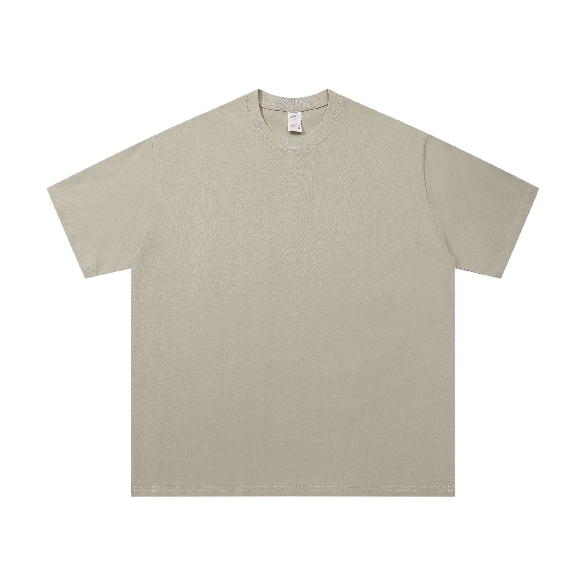 405g 중량형 솔리드 컬러 퓨어 코튼 티셔츠 두꺼운 불투명 한 반팔 남성 및 여성 아메리칸 스타일 작은 칼라 느슨한 플러스 사이즈 탑스토어 가기