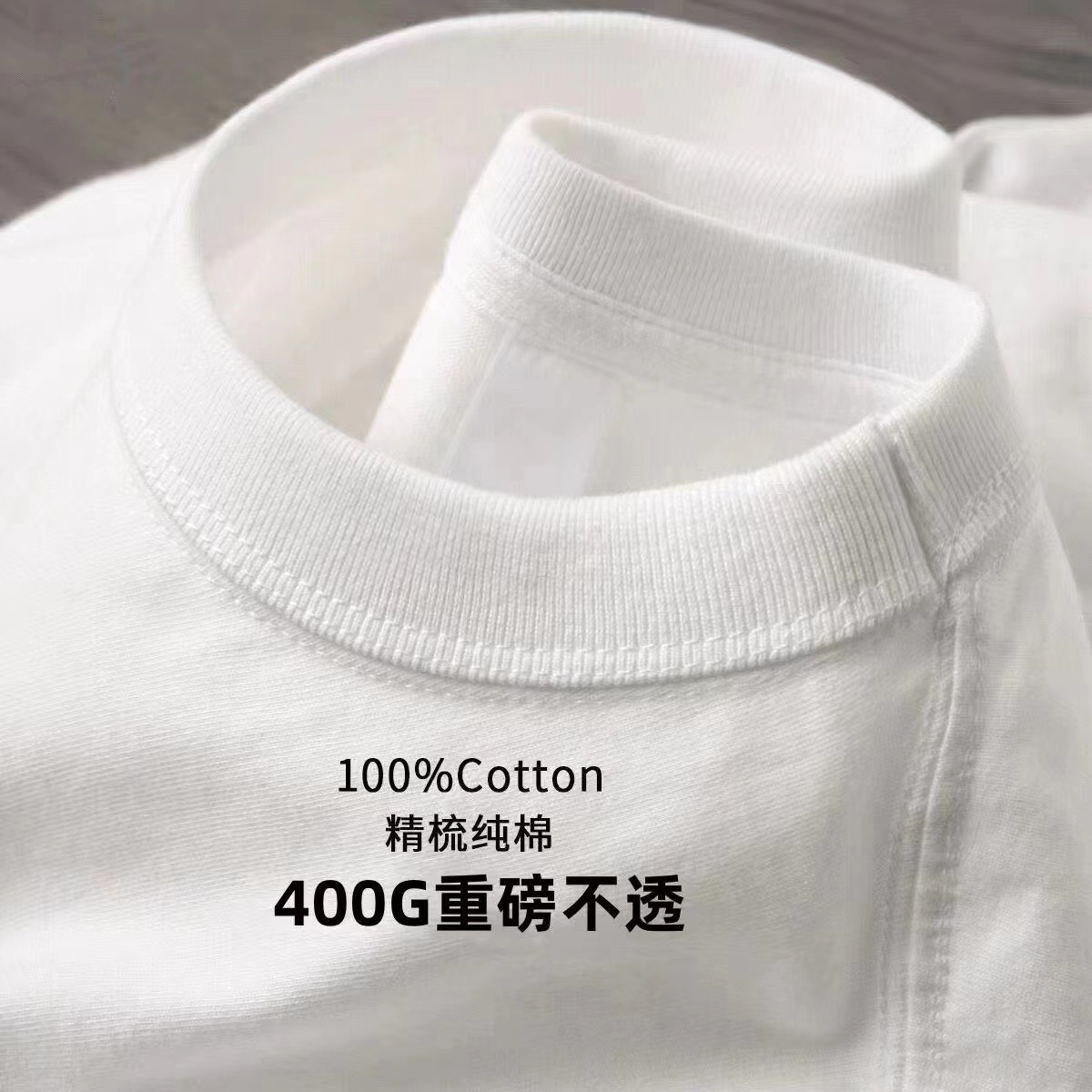 405g 중량형 솔리드 컬러 퓨어 코튼 티셔츠 두꺼운 불투명 한 반팔 남성 및 여성 아메리칸 스타일 작은 칼라 느슨한 플러스 사이즈 탑
