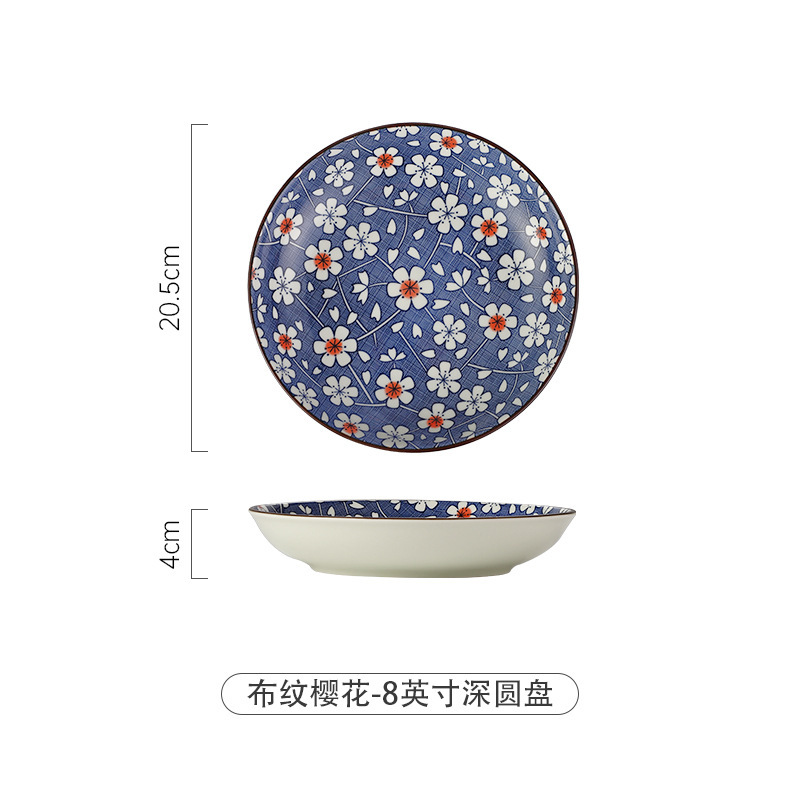 일본식 복고풍 8 인치 가정용 접시 그물 붉은 식기 과일 플레이트 샐러드 스테이크 플레이트 깊은 쌀 플레이트 도매스토어 가기
