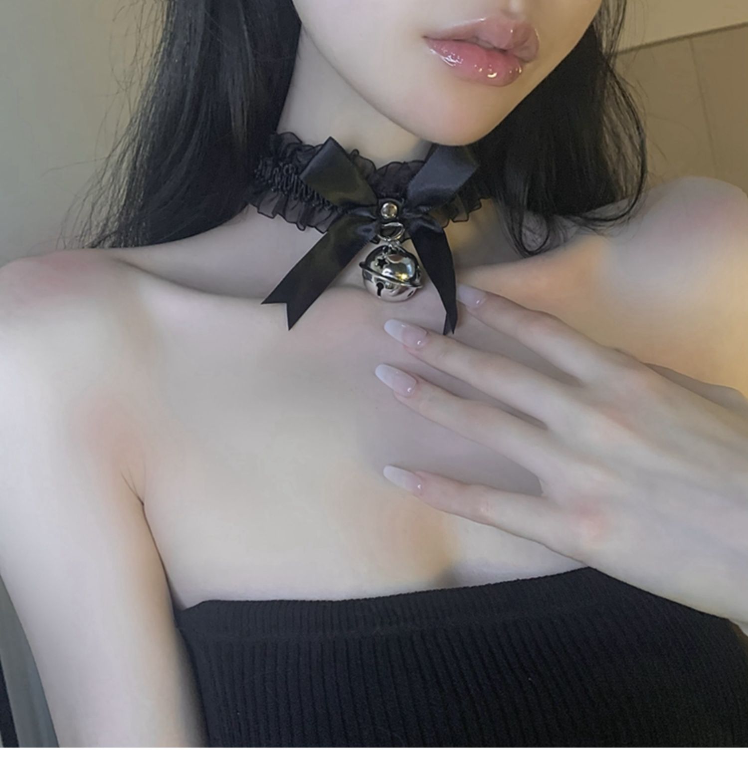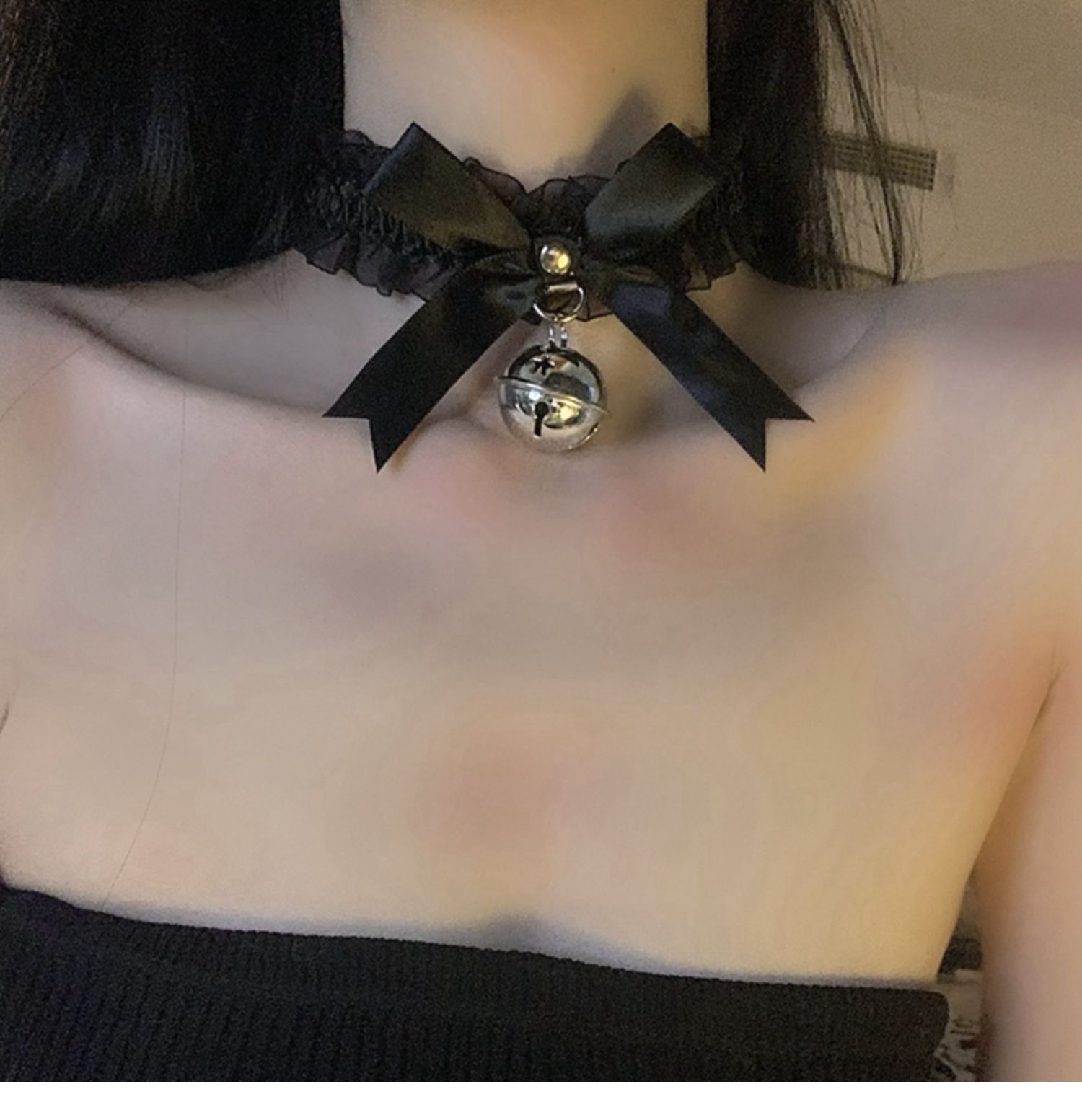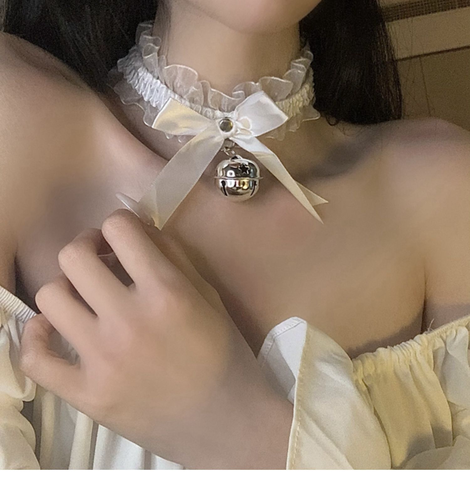 P66D 이상한 대모 레이스 작은 벨 칼라 여성 목 밴드 초커 목 크리스마스 쇄골 체인 목걸이스토어 가기