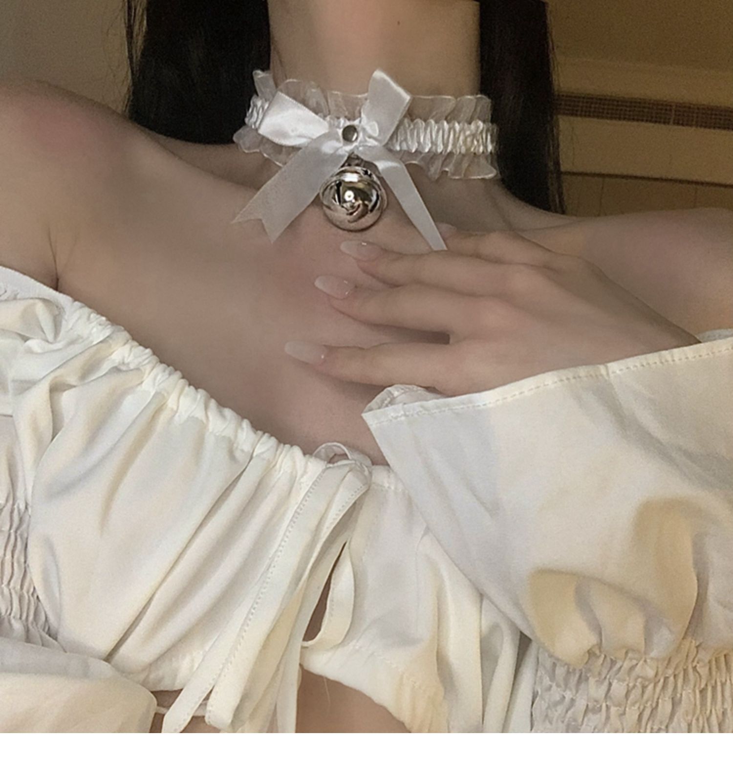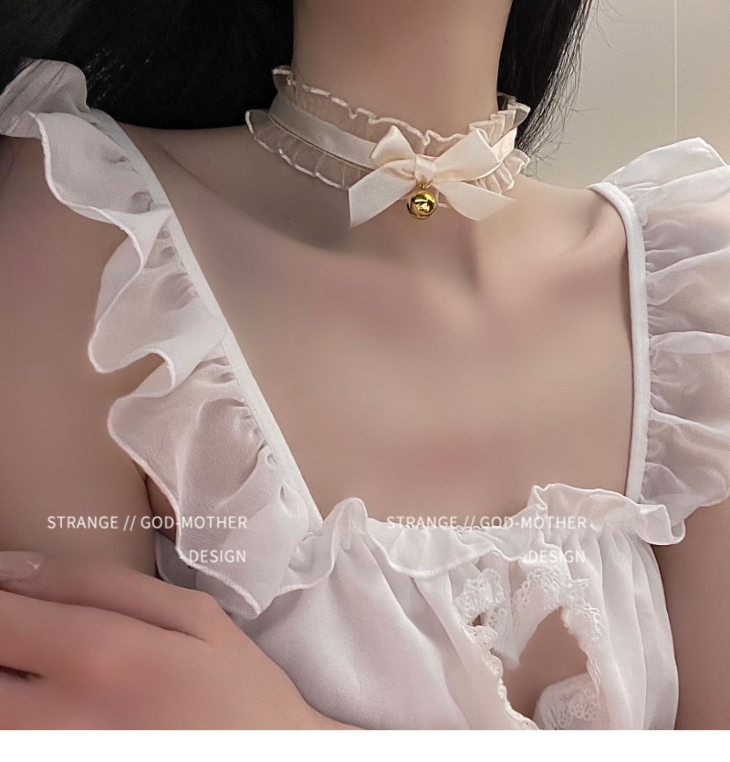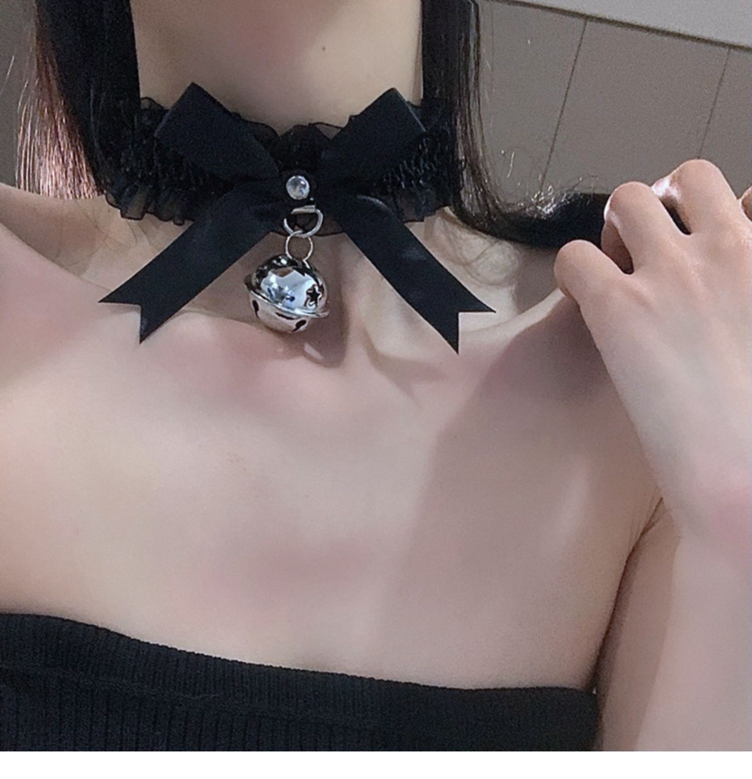 P66D 이상한 대모 레이스 작은 벨 칼라 여성 목 밴드 초커 목 크리스마스 쇄골 체인 목걸이스토어 가기