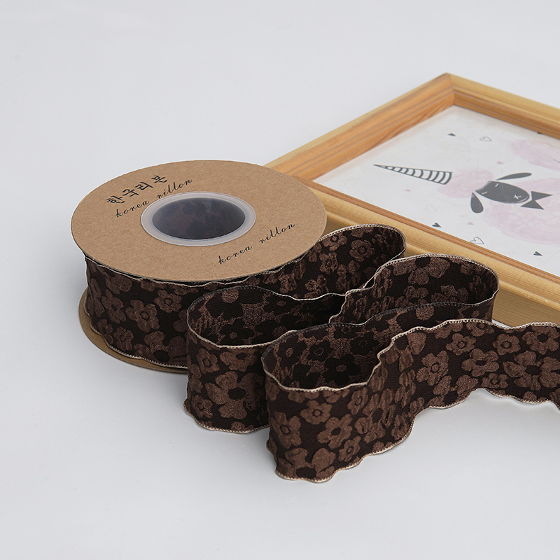 • [기간 한정 특가] 엠보싱 플라워 리본 - 4CM 커피 컬러 [10야드/롤]